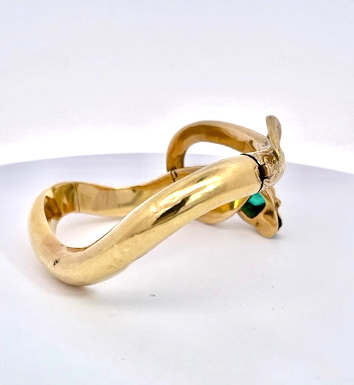 14K Yellow Gold Emerald Head Chased Snake Bracelet