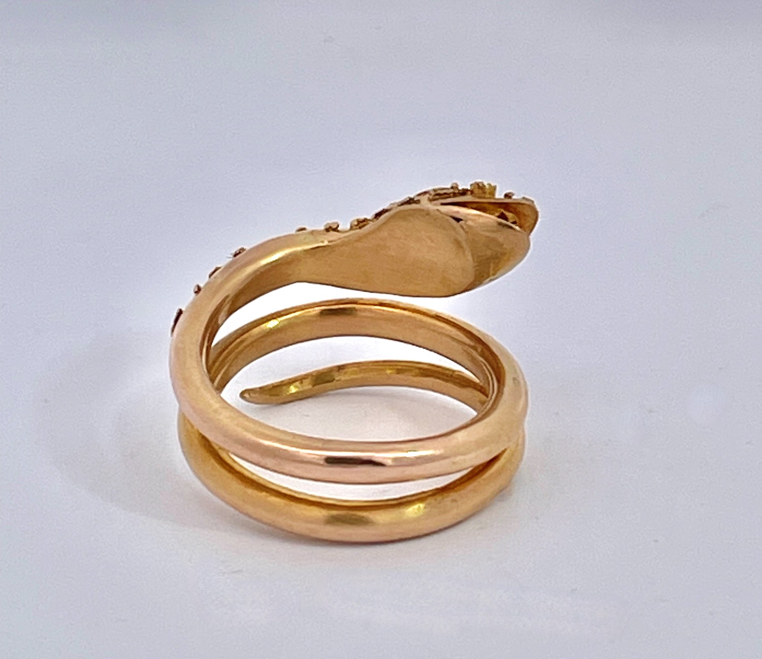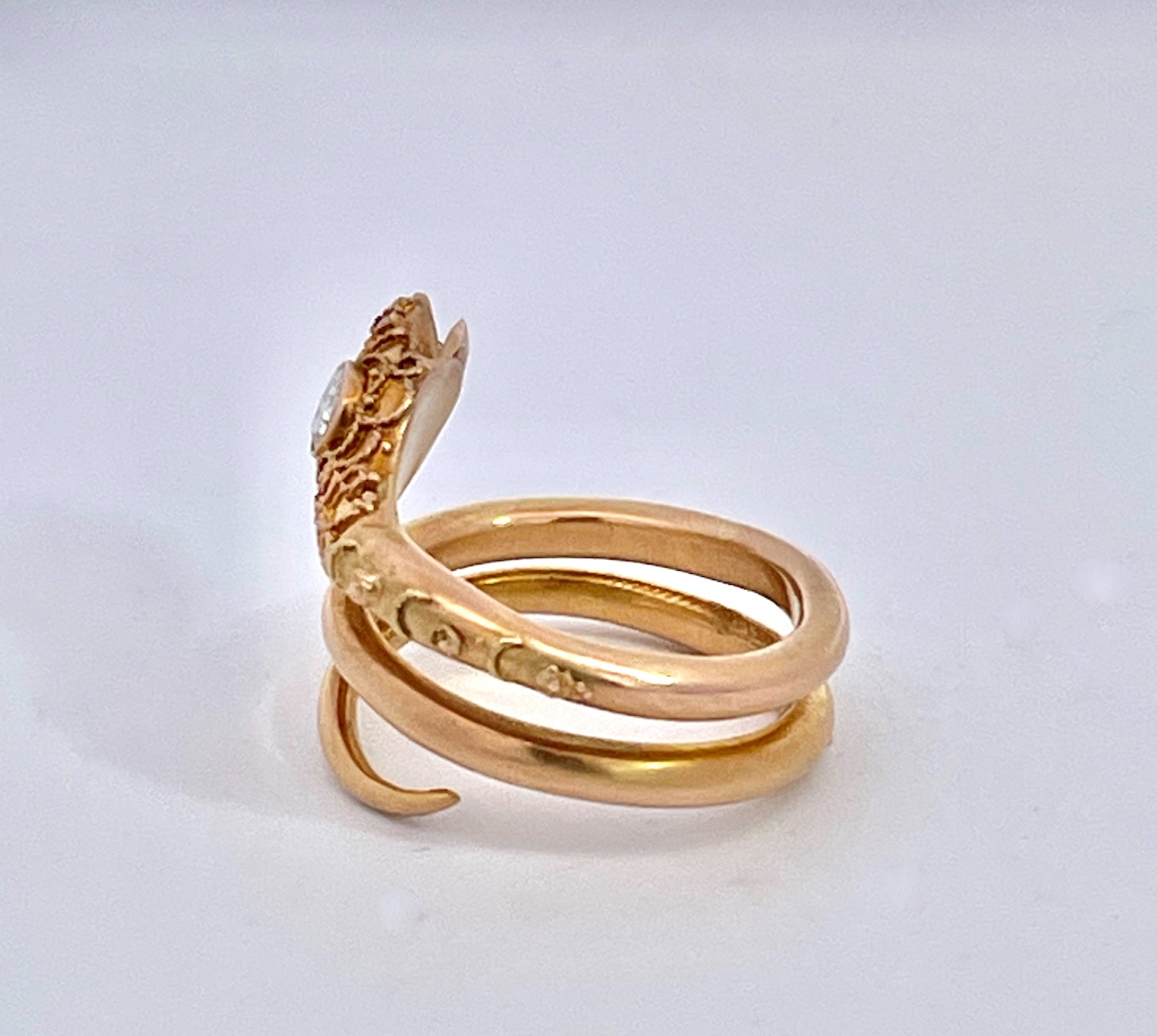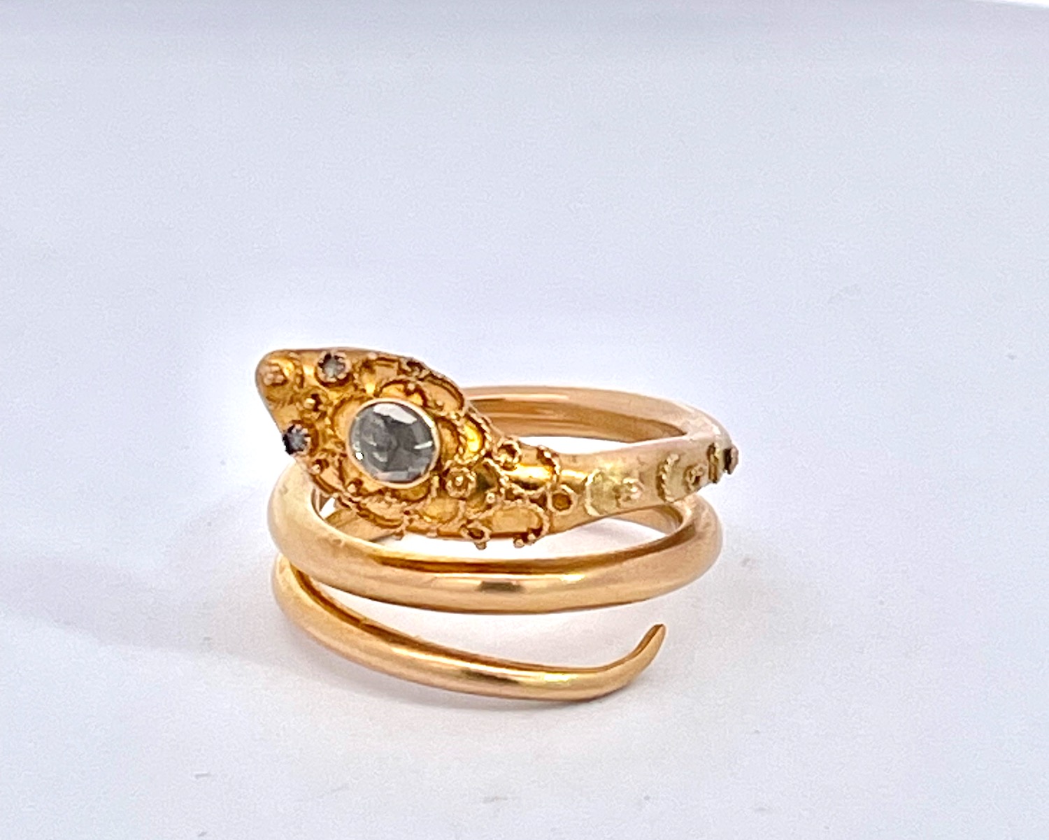 SKU: 8732414K Yellow Gold Snake Ring with Granulated Head plus Diamond