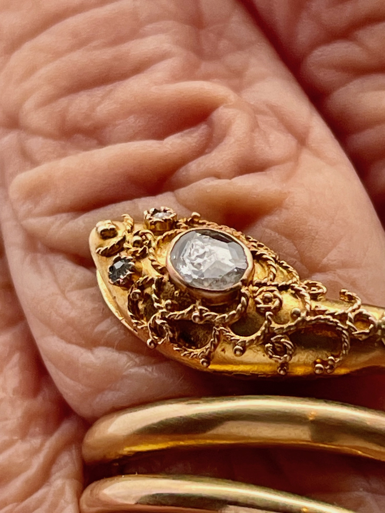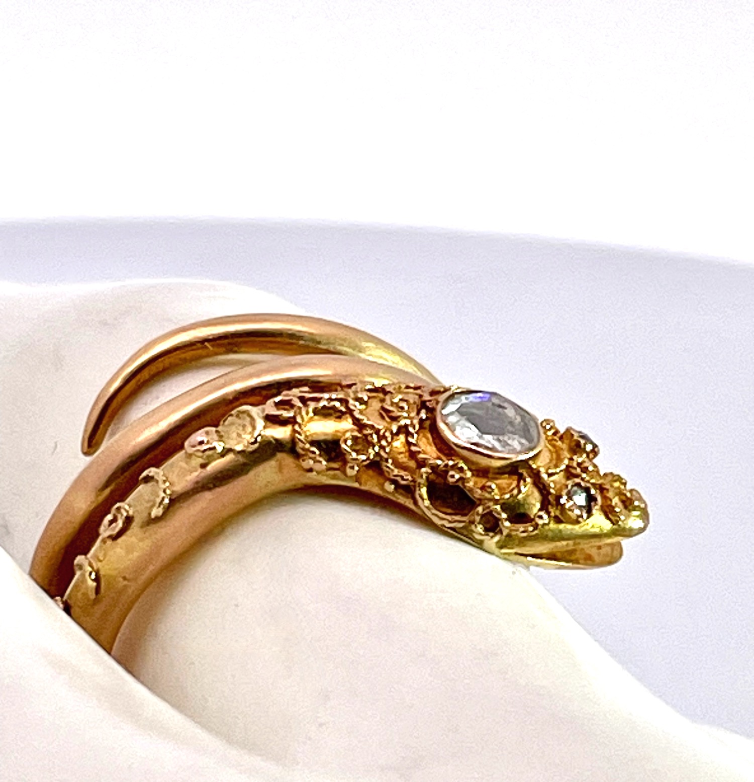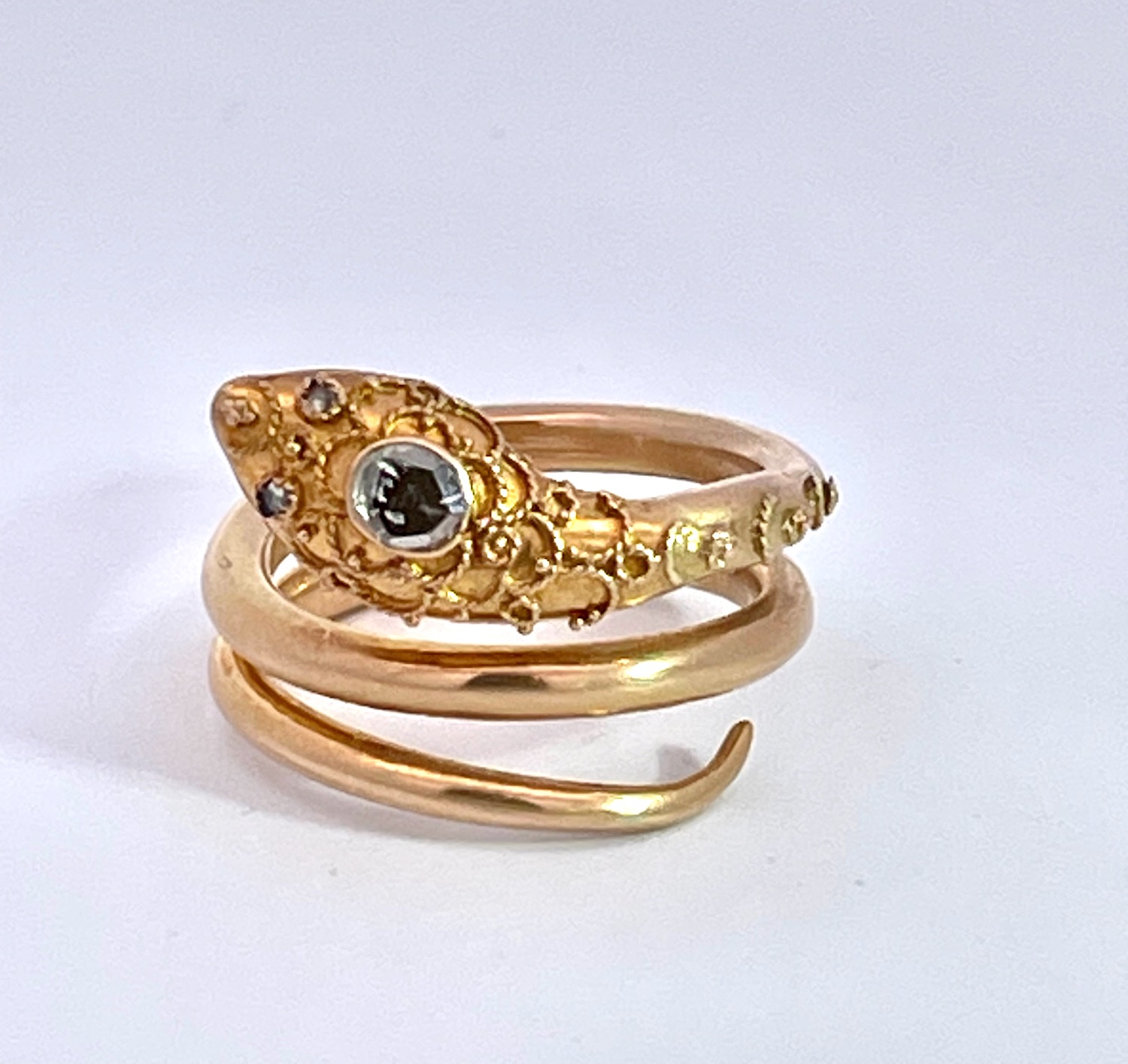 14K Yellow Gold Snake Ring with Granulated Head plus Diamond