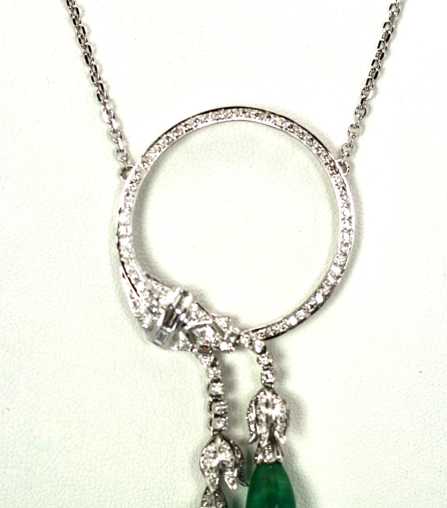SKU: 8724518K White Gold Circle Pin Encrusted w/ Diamonds & Emerald Drops