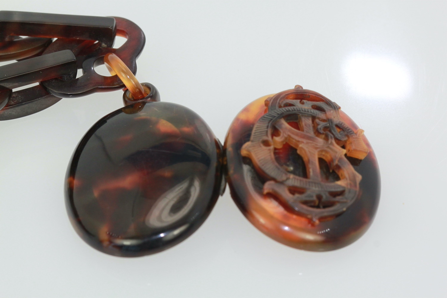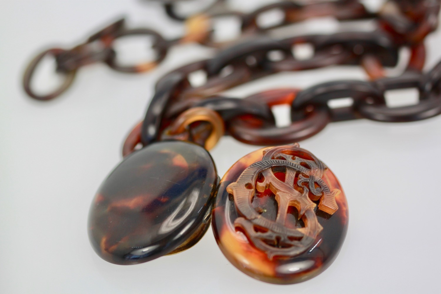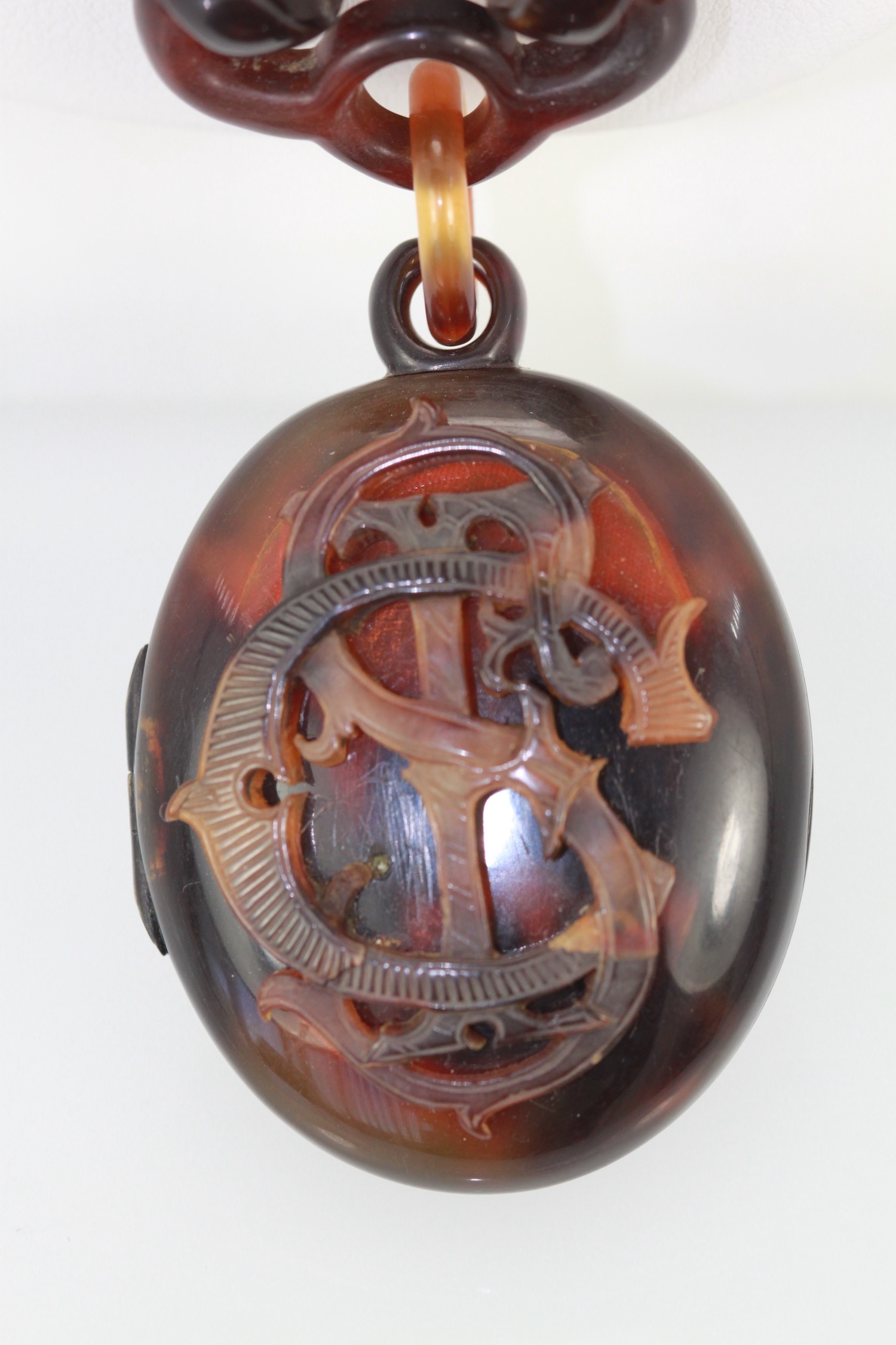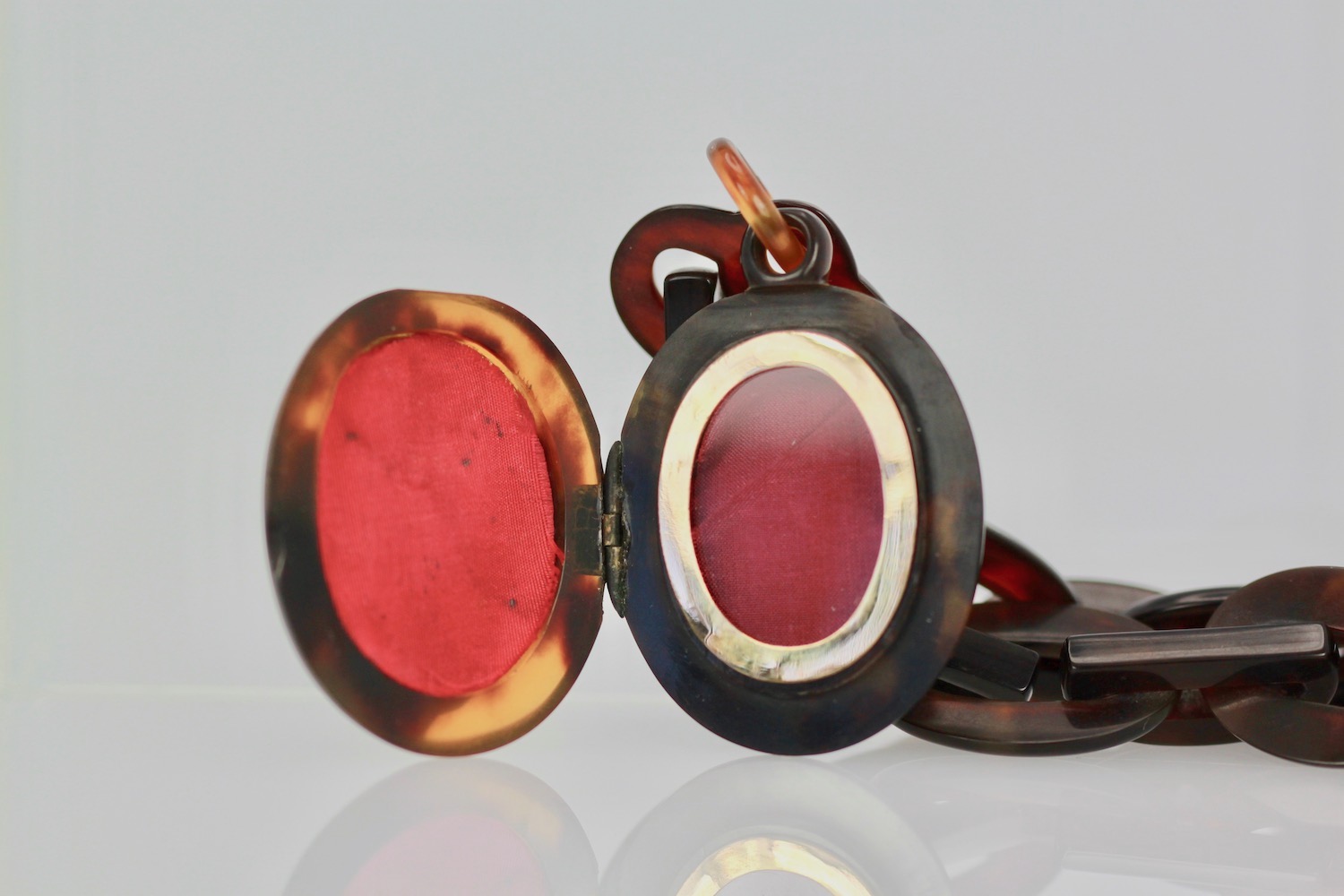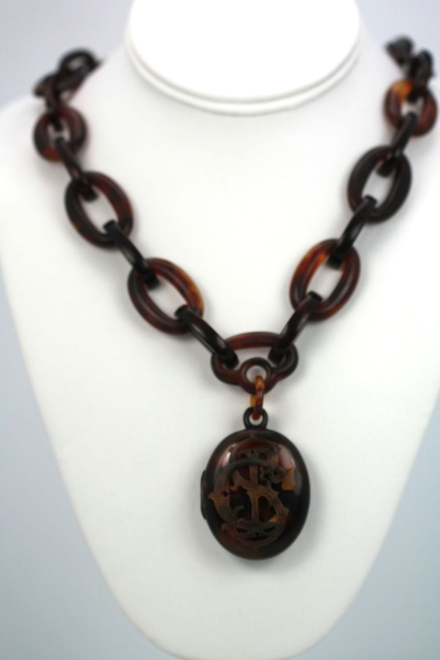 Antique 1890’s Tortoise Shell Locket with Tortoise link Chain