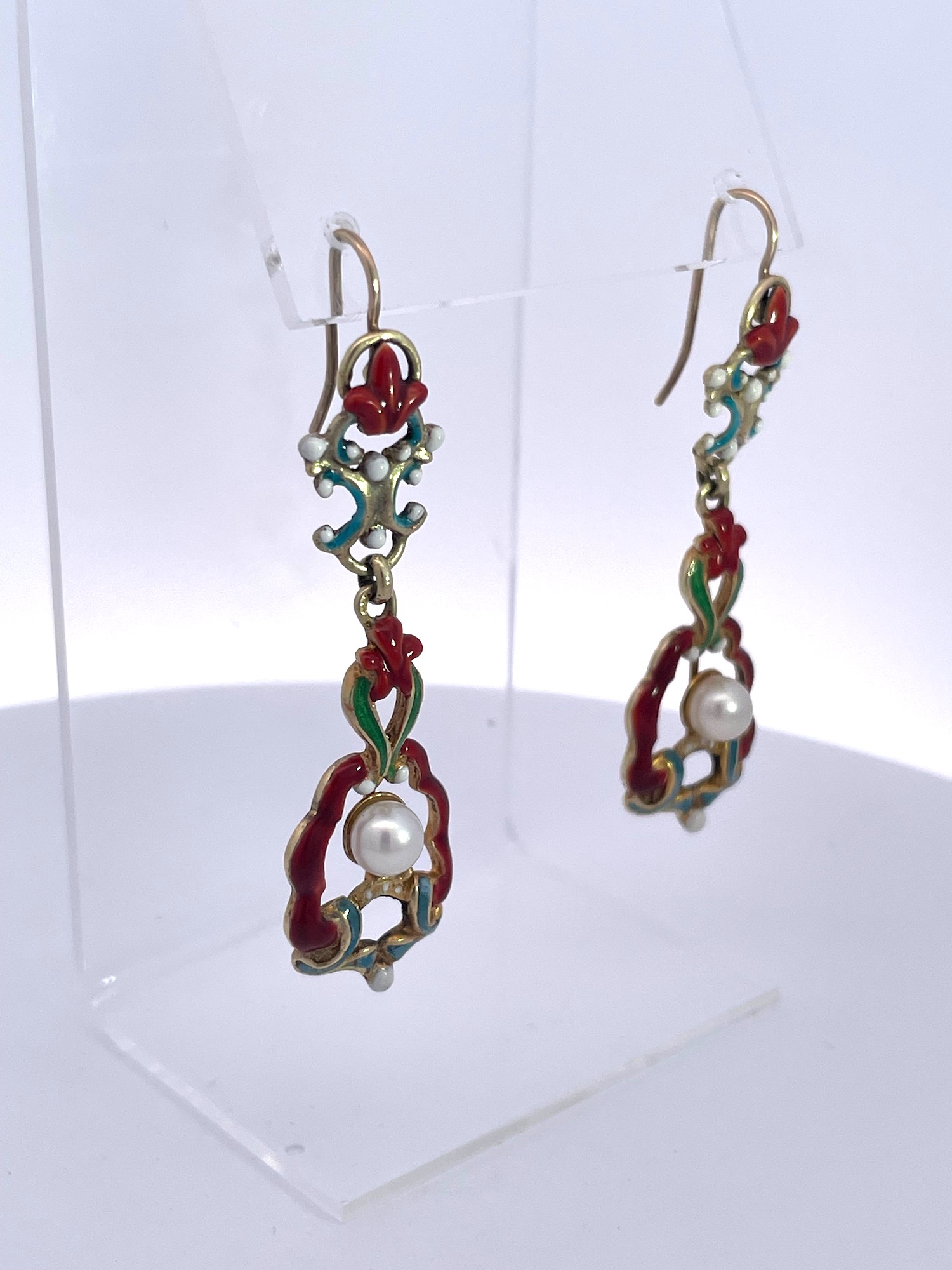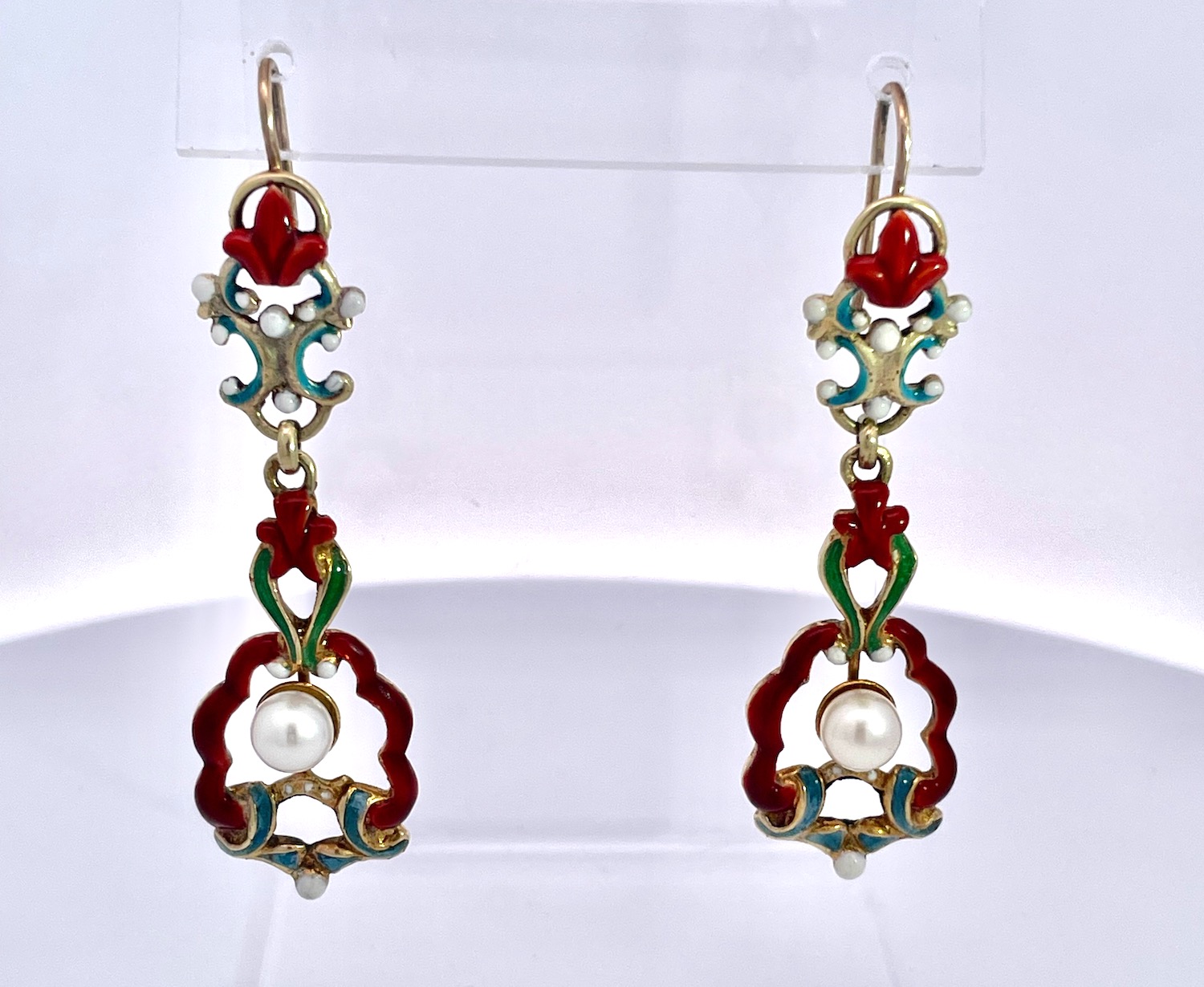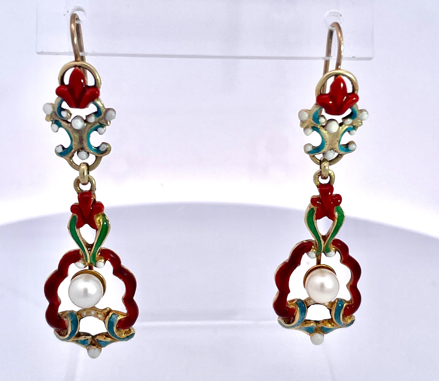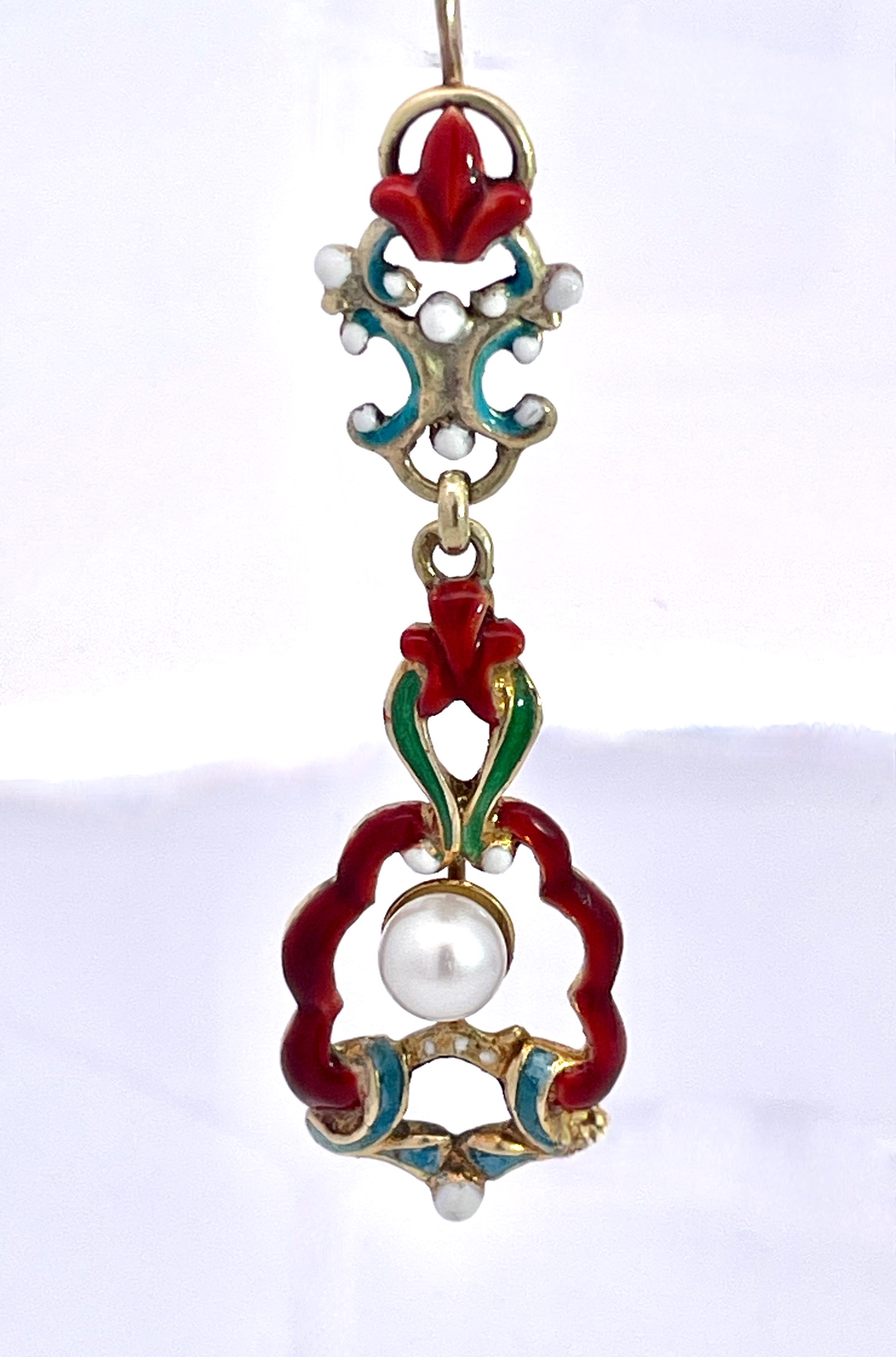 SKU: 87343Antique Enamel and Pearl Dangle Earrings