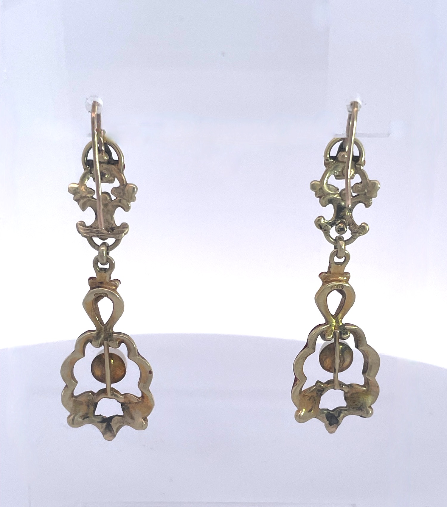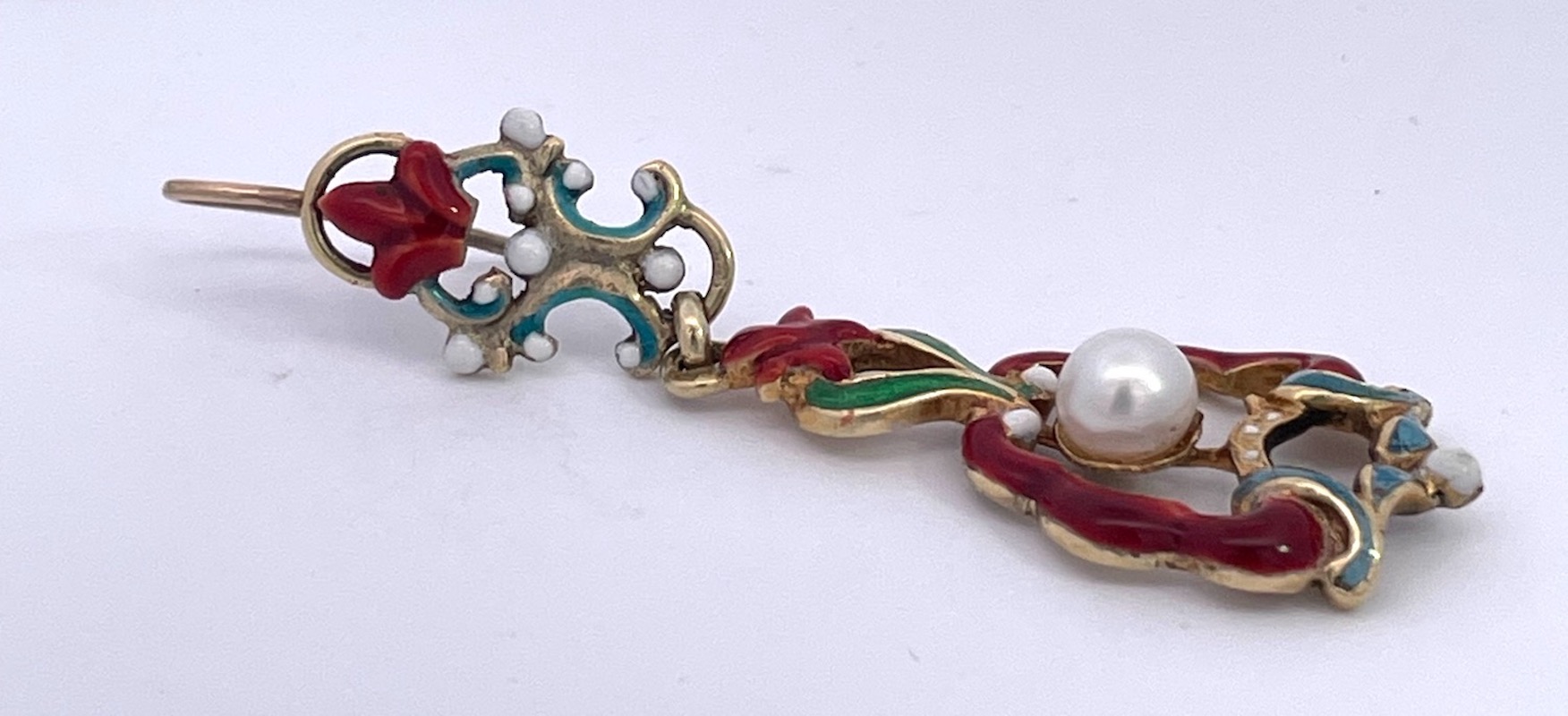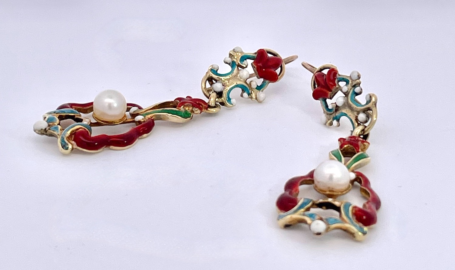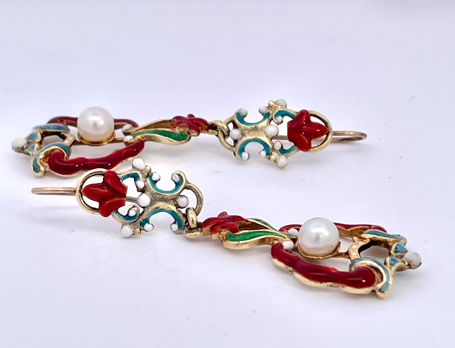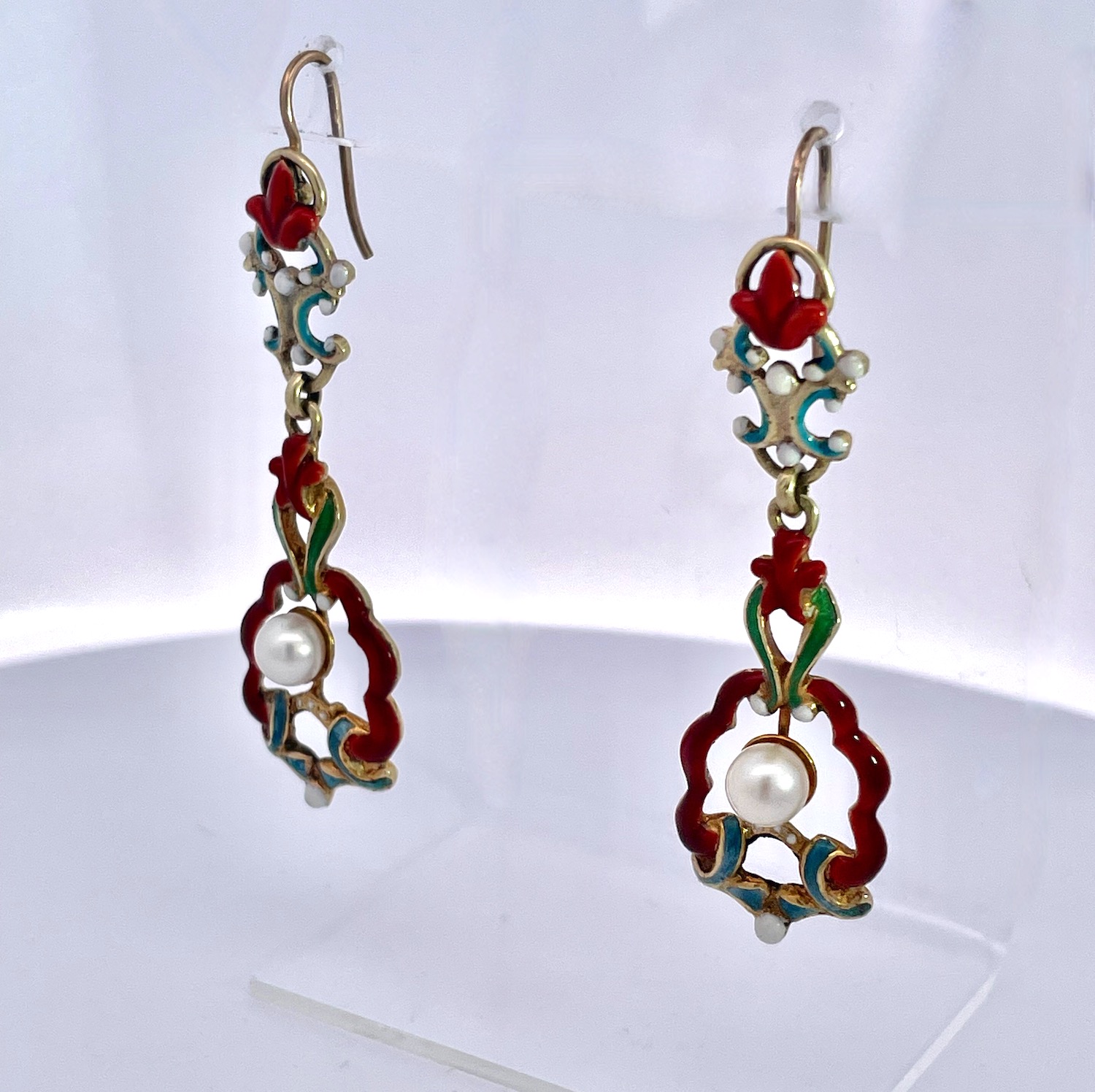 SKU: 87343Antique Enamel and Pearl Dangle Earrings