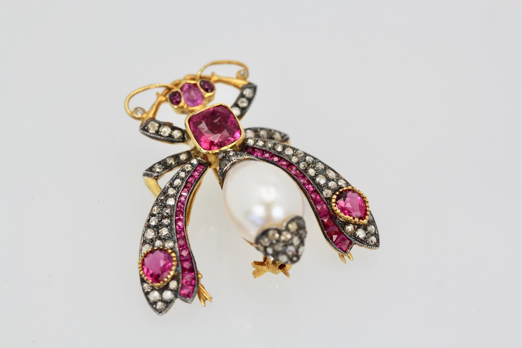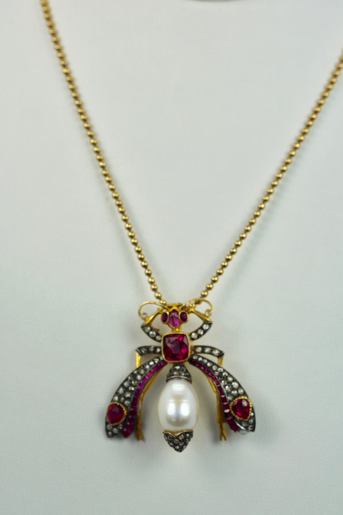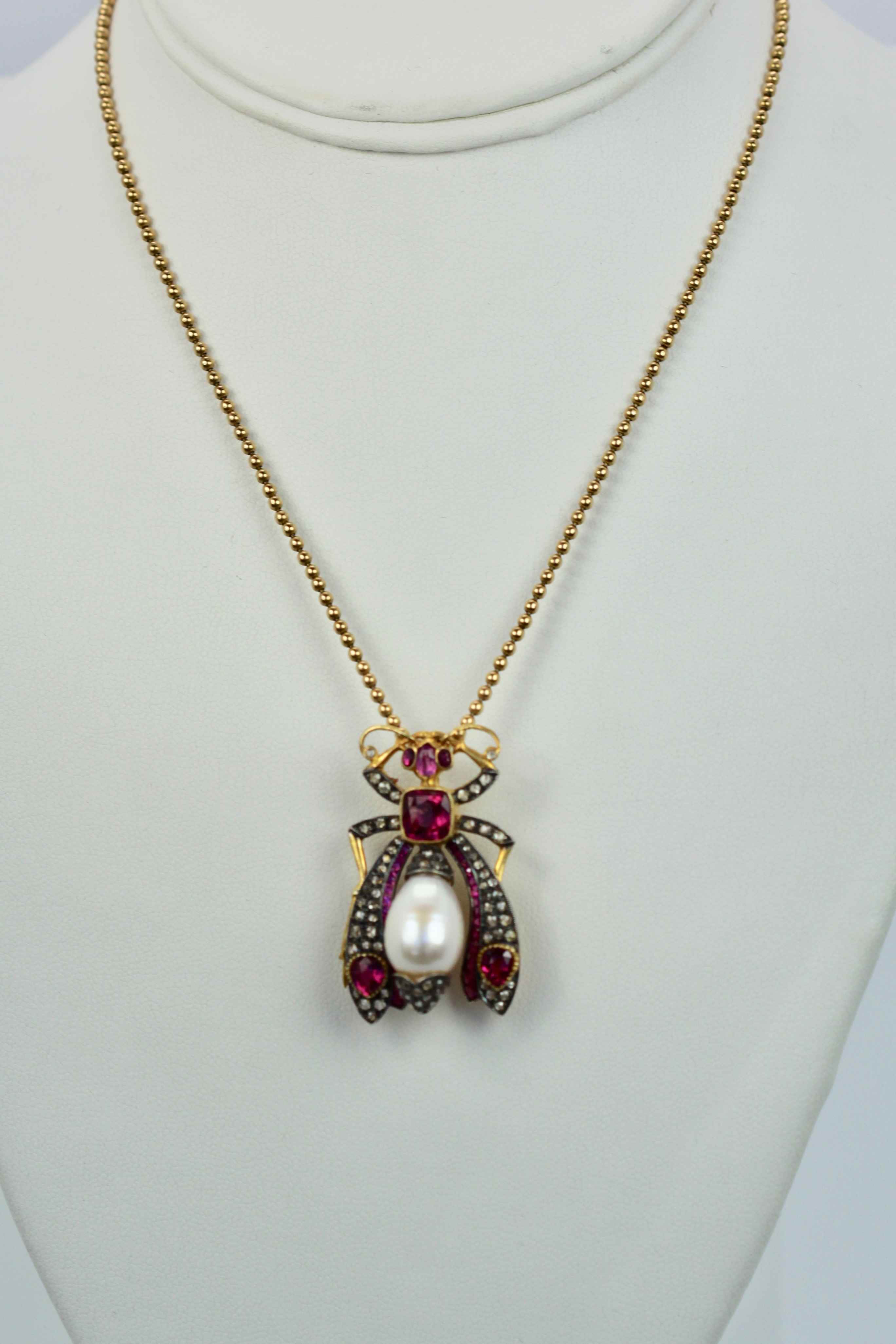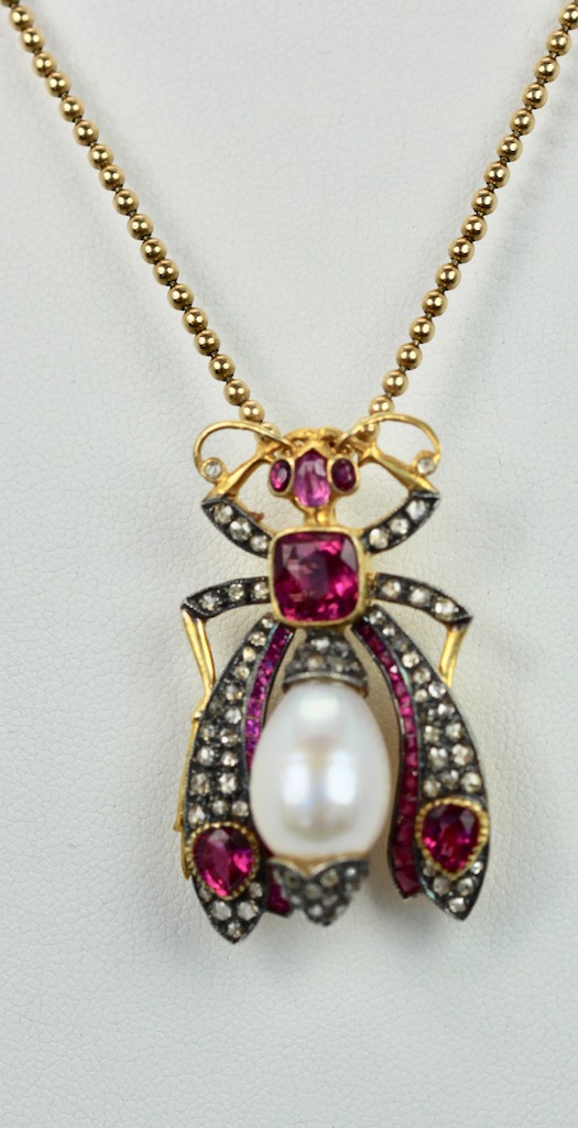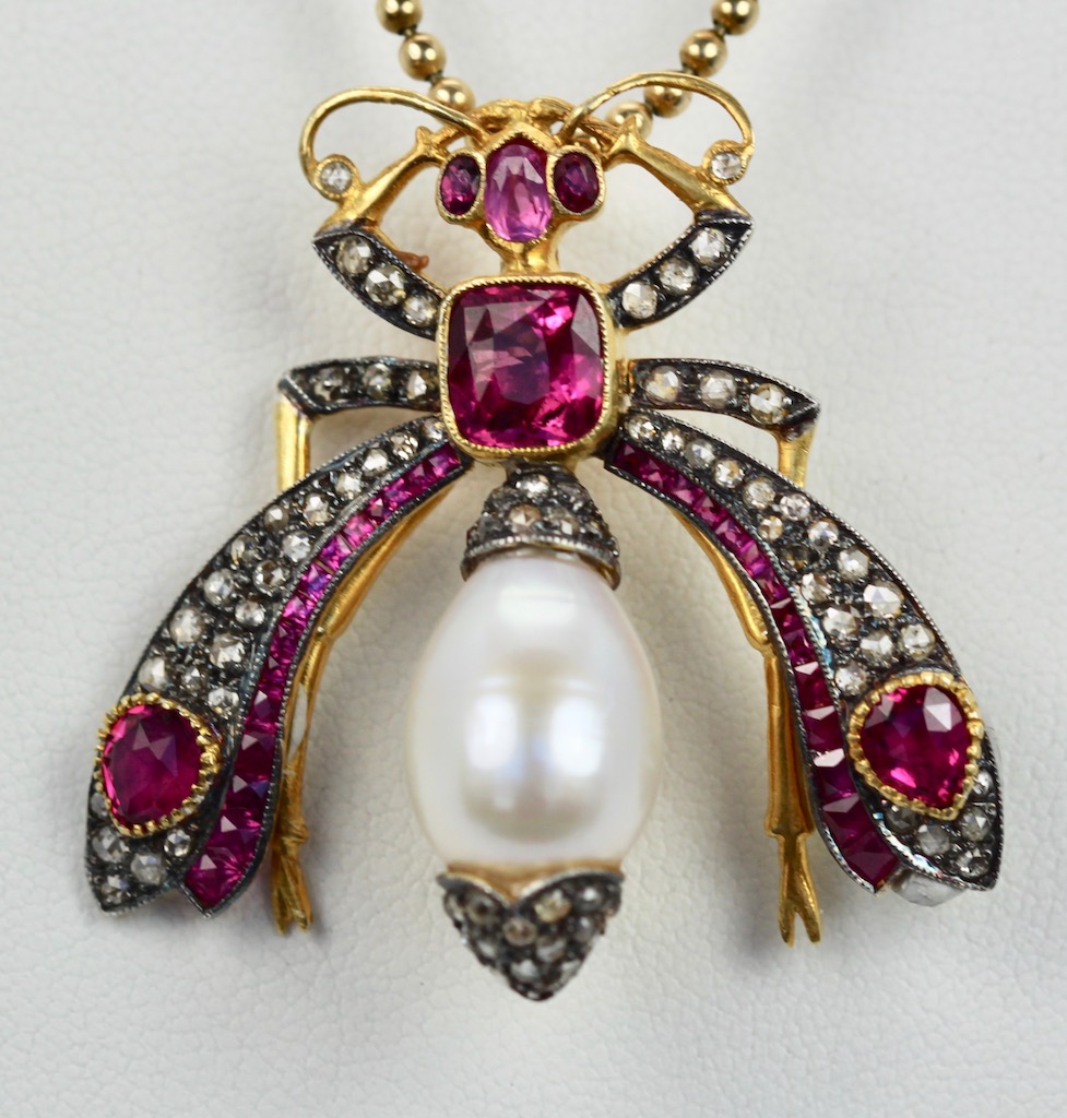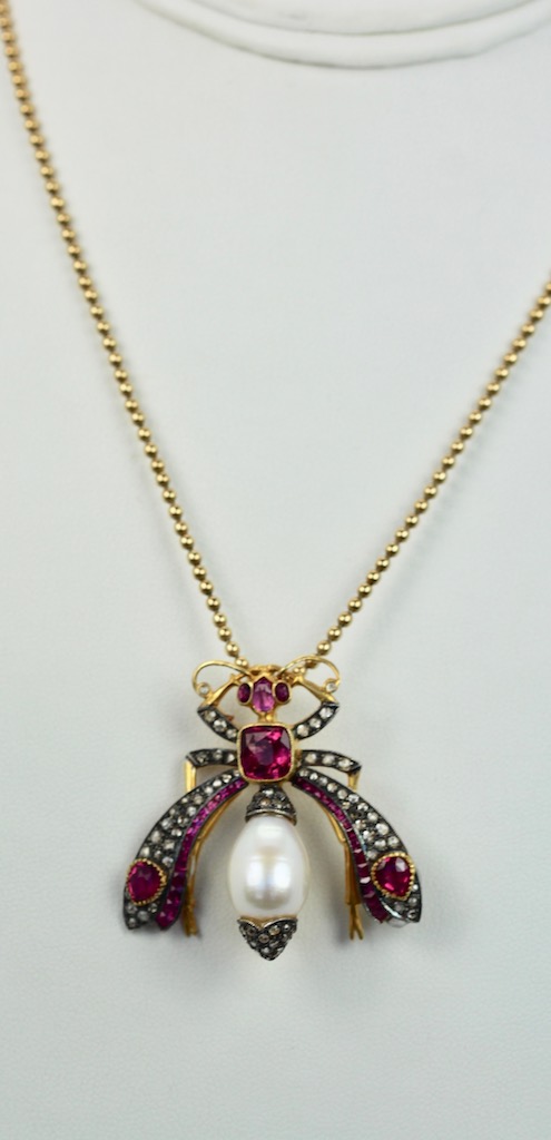 SKU: 86947Antique Ruby Pearl Diamond Insect Brooch Pendant 18K
