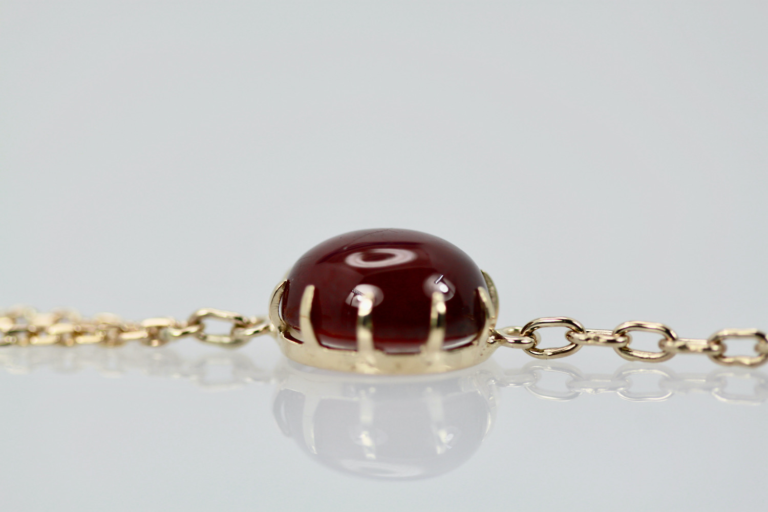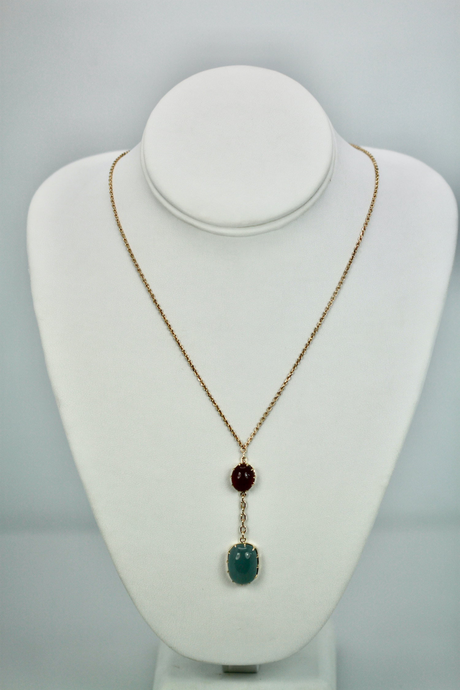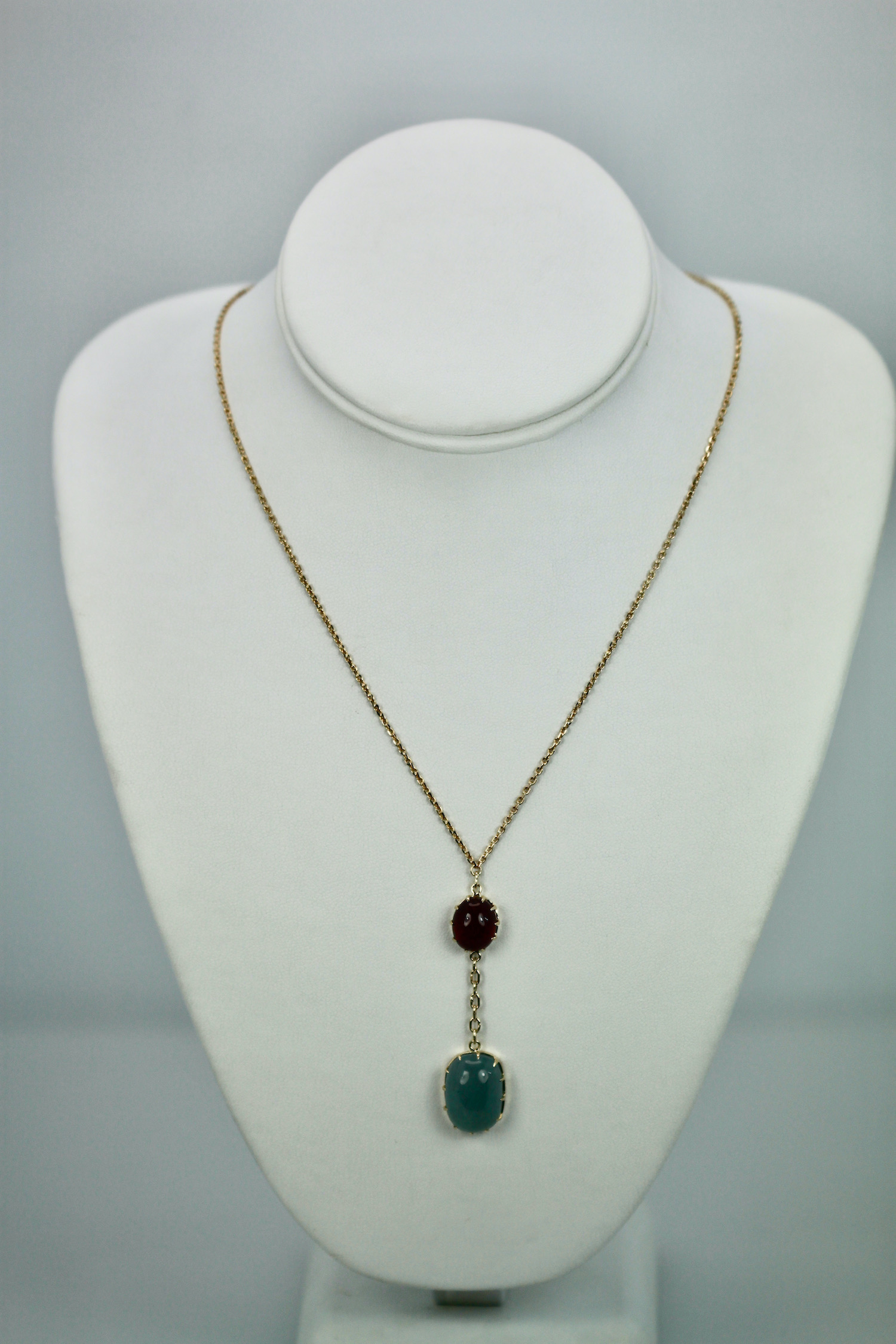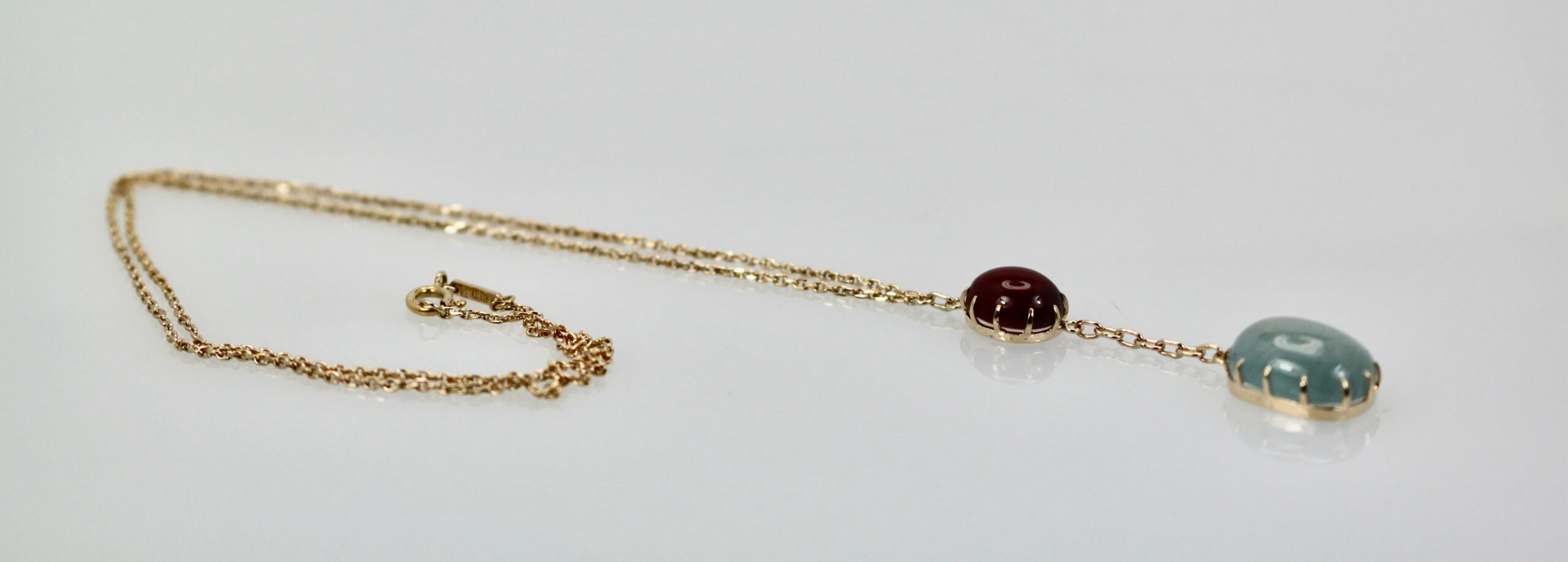 SKU: N/AAquamarine Cabochon Lariat Necklace 15.40 TCW Gold Chain w/Ruby Cabochon 14K Handmade.