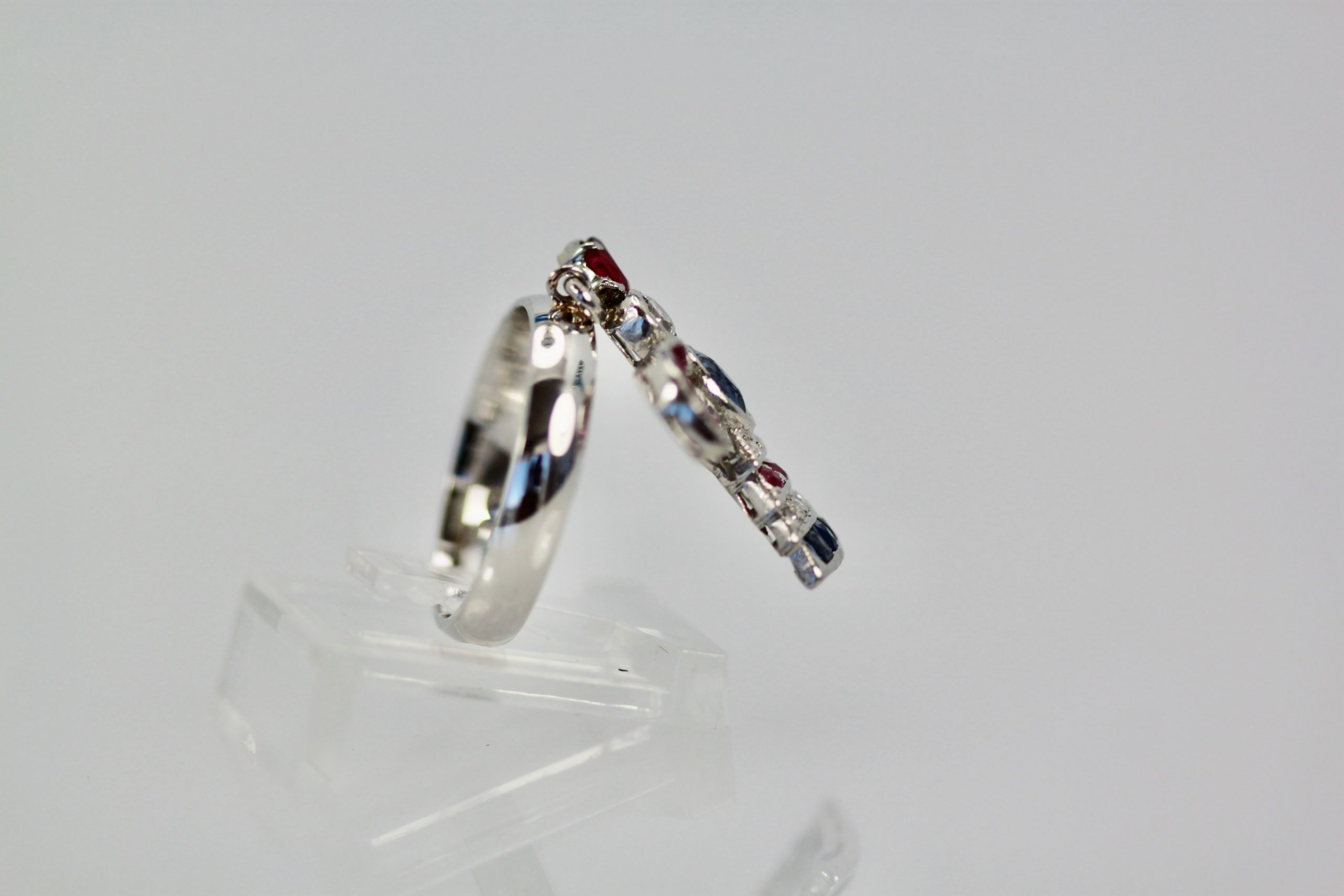 This lovely Art Deco Charm is from the 1920’s and it is beautiful. I placed this on a Platinum band which is size 6.25 but it can be sized up or down. This charm is a lady with a fan and headress in a gown that is covered in Diamonds, Rubies, and Sapphires. Unique and special. As you might know I just love Platinum Deco Charms I can not help myself from buying every good piece I find. They are special as you look at these charms and the details are remarkable for such a small piece of jewelry. This charm and the “melon man” always brings a smile to my face as they are just delightful. Do not wait.