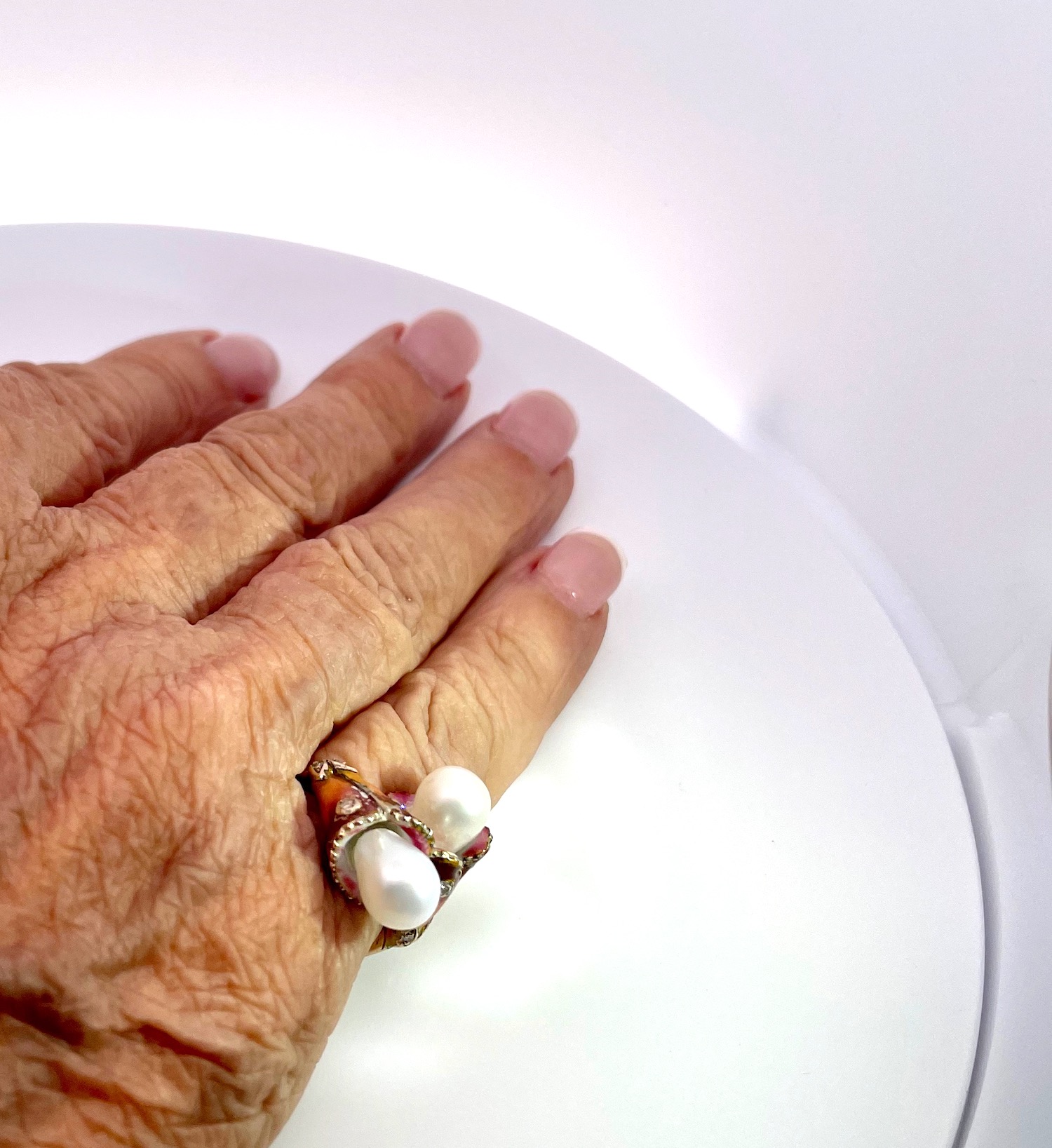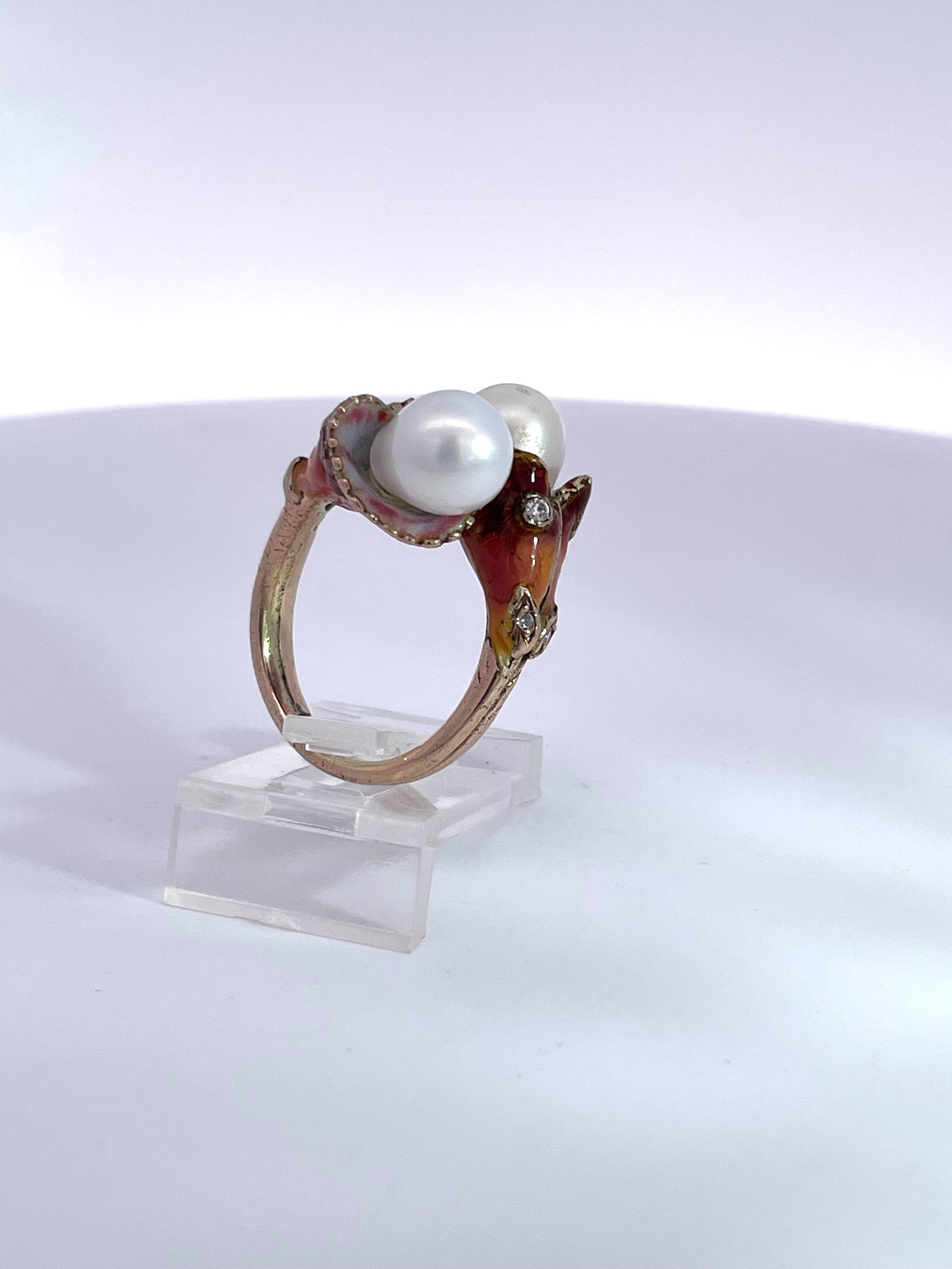 SKU: 87341Art Nouveau Double Pearl Diamond and Enamel ring