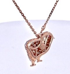 This charming set puts a big smile on my face. This set is made of 18K Rose gold set with Diamonds of various soft colors as well as white Diamonds. This is a pendant and matching pierced earrings. The necklace is 17" long and the Diamond chick has a ruby eye. The chain is also studded with 2round Diamonds of .005 each. The gross weight for the pendant only is 4.83 grams. The earrings weight 8.06 grams and are the same as the pendant in size. They measure 1.2cm x 2 cm. These just came out of Hong Kong and are ready for their next owner. Is that you? If so do not wait, it just might be too late.