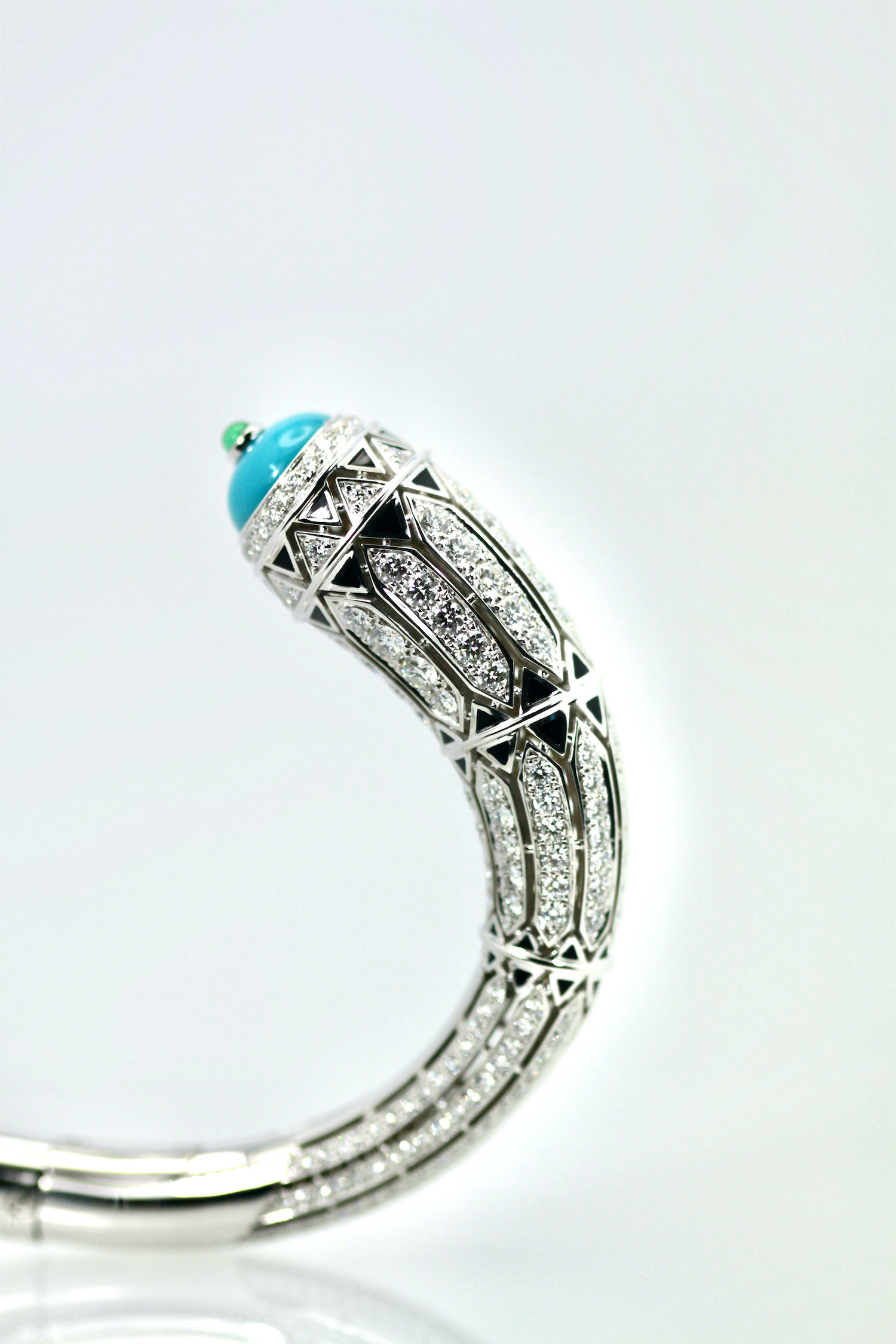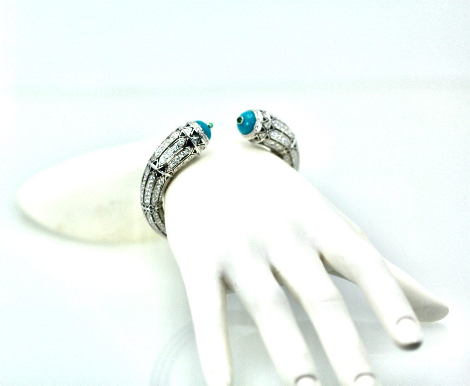 Cartier High Jewelry Diamond Turquoise Bracelet Deco Inspired 12.73 Carat