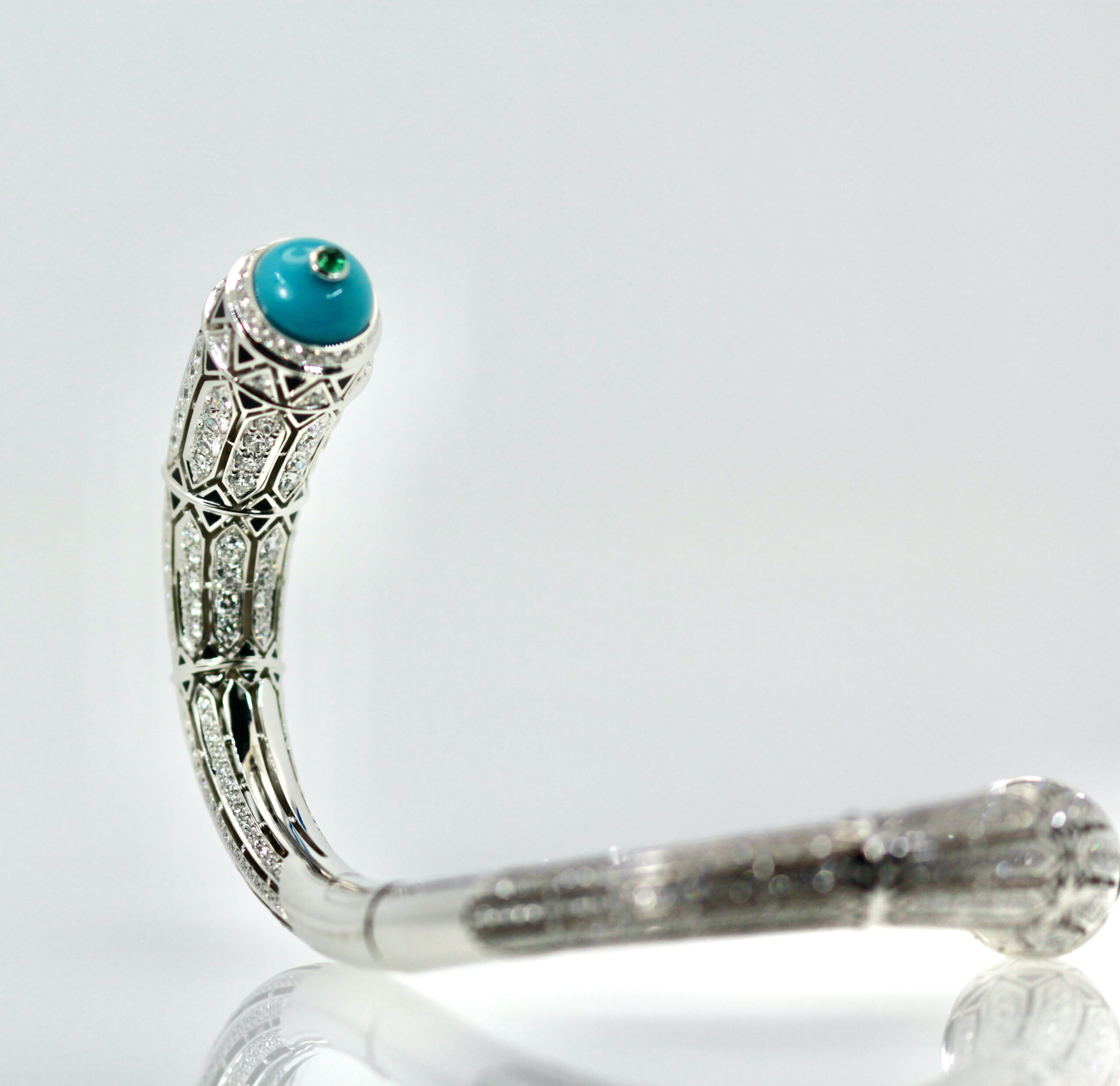 Enamel Snake Bangle Bracelet With Yellow Gold & Diamonds