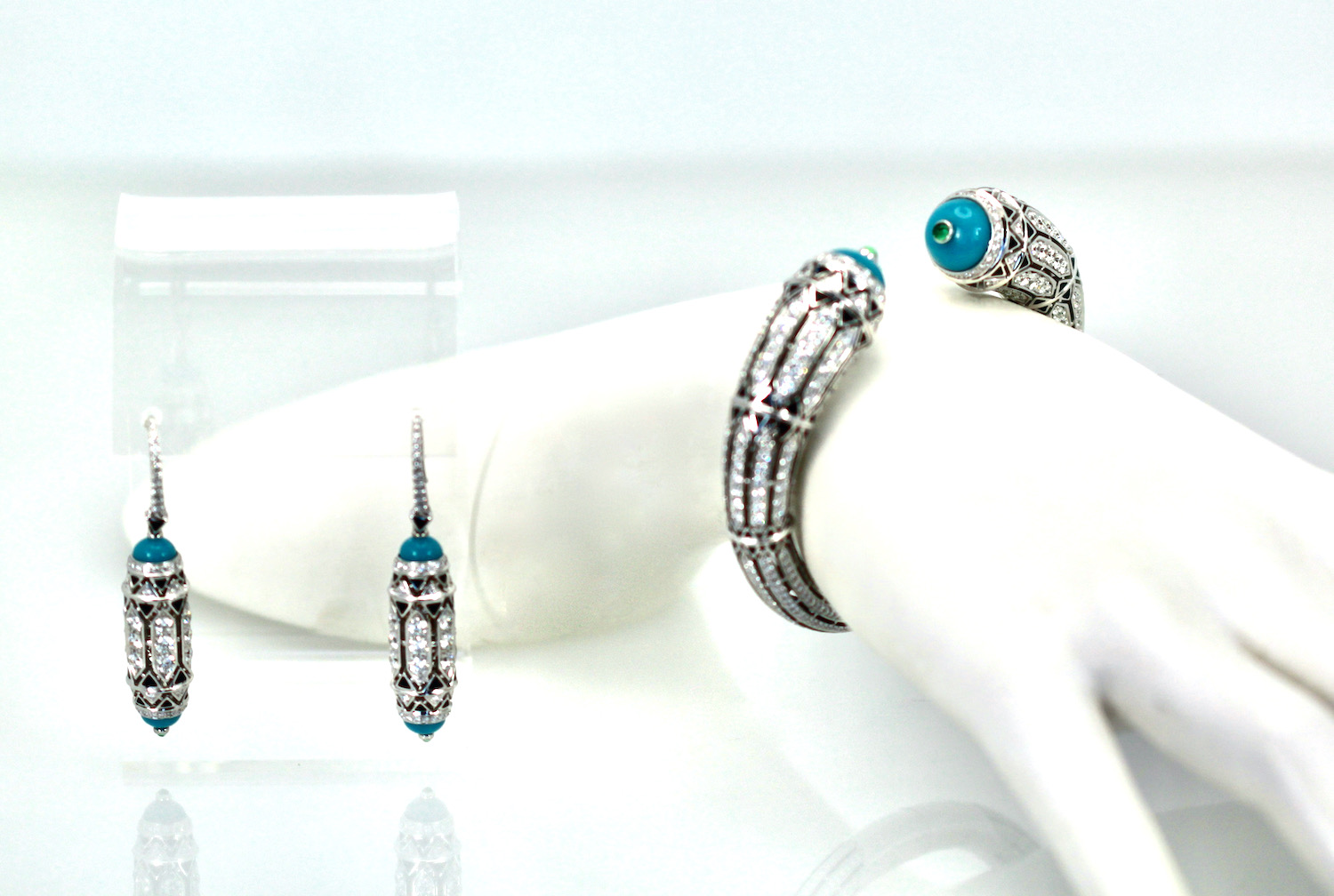 Cartier High Jewelry Diamond Turquoise Bracelet Deco Inspired 12.73 Ct