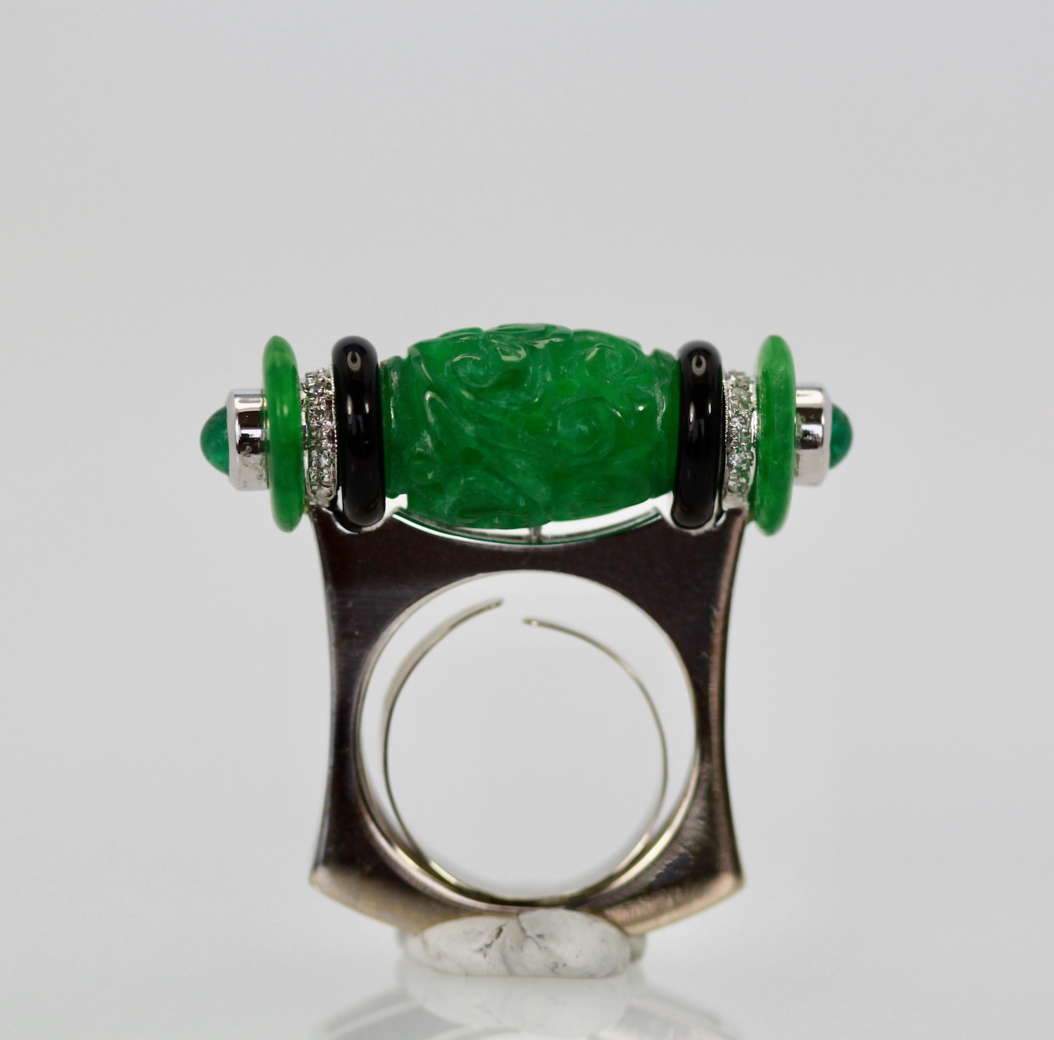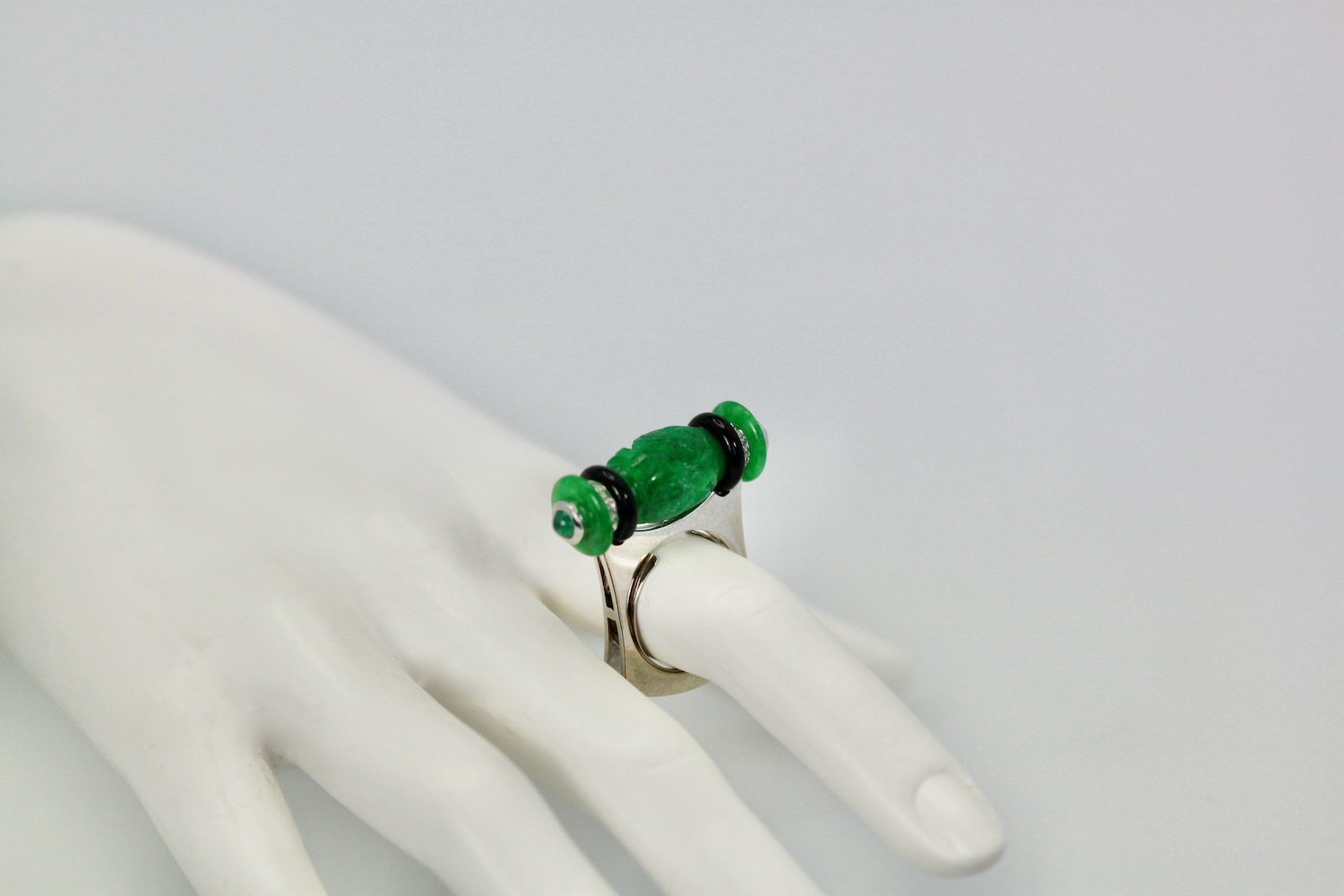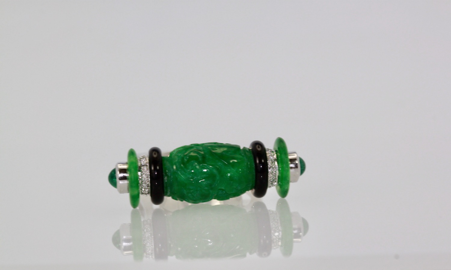 Carved Jade Onyx Cabochon Emerald Ring