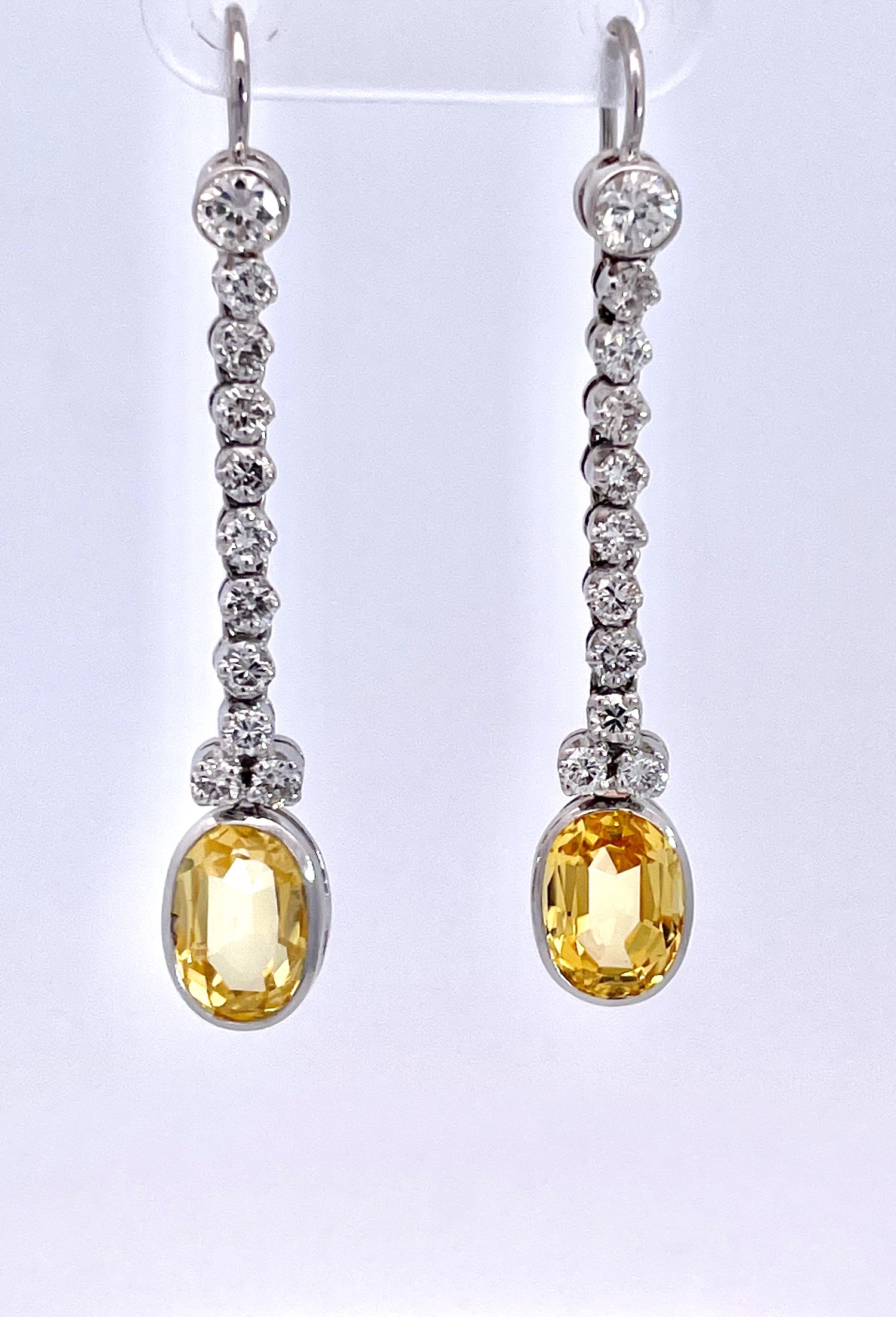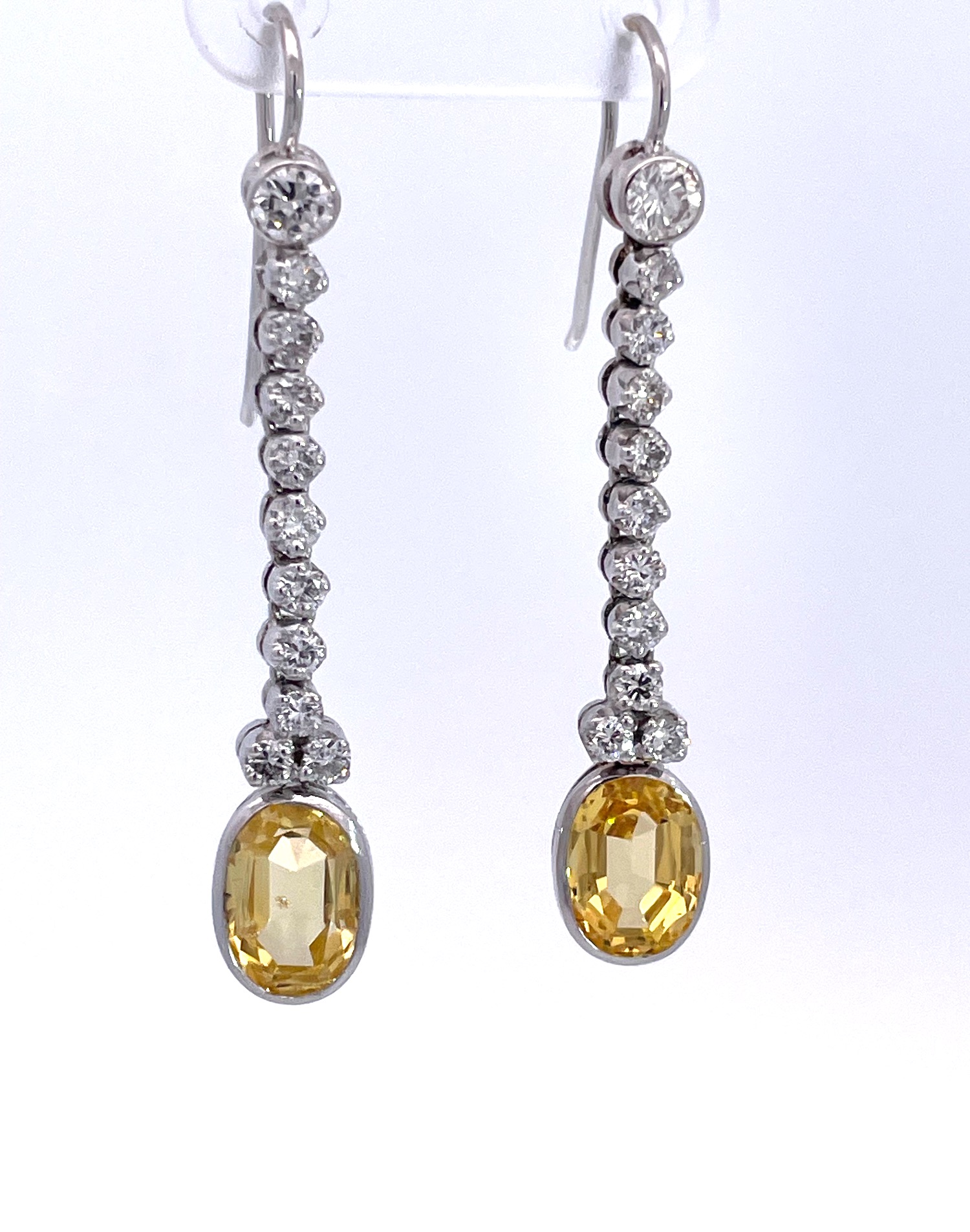 SKU: 87284Certified Ceylon no heat Yellow Sapphire Diamond Drop Earrings