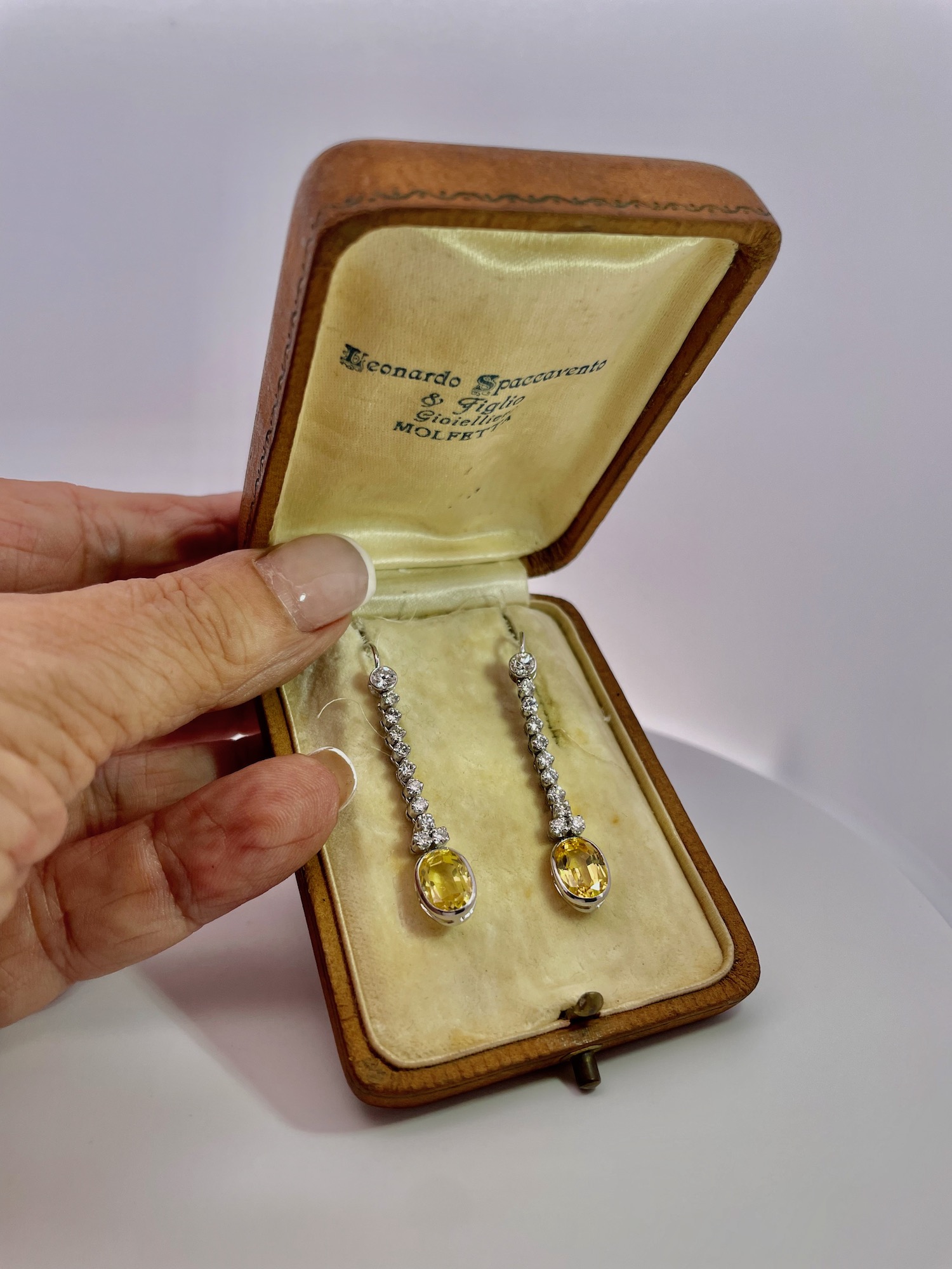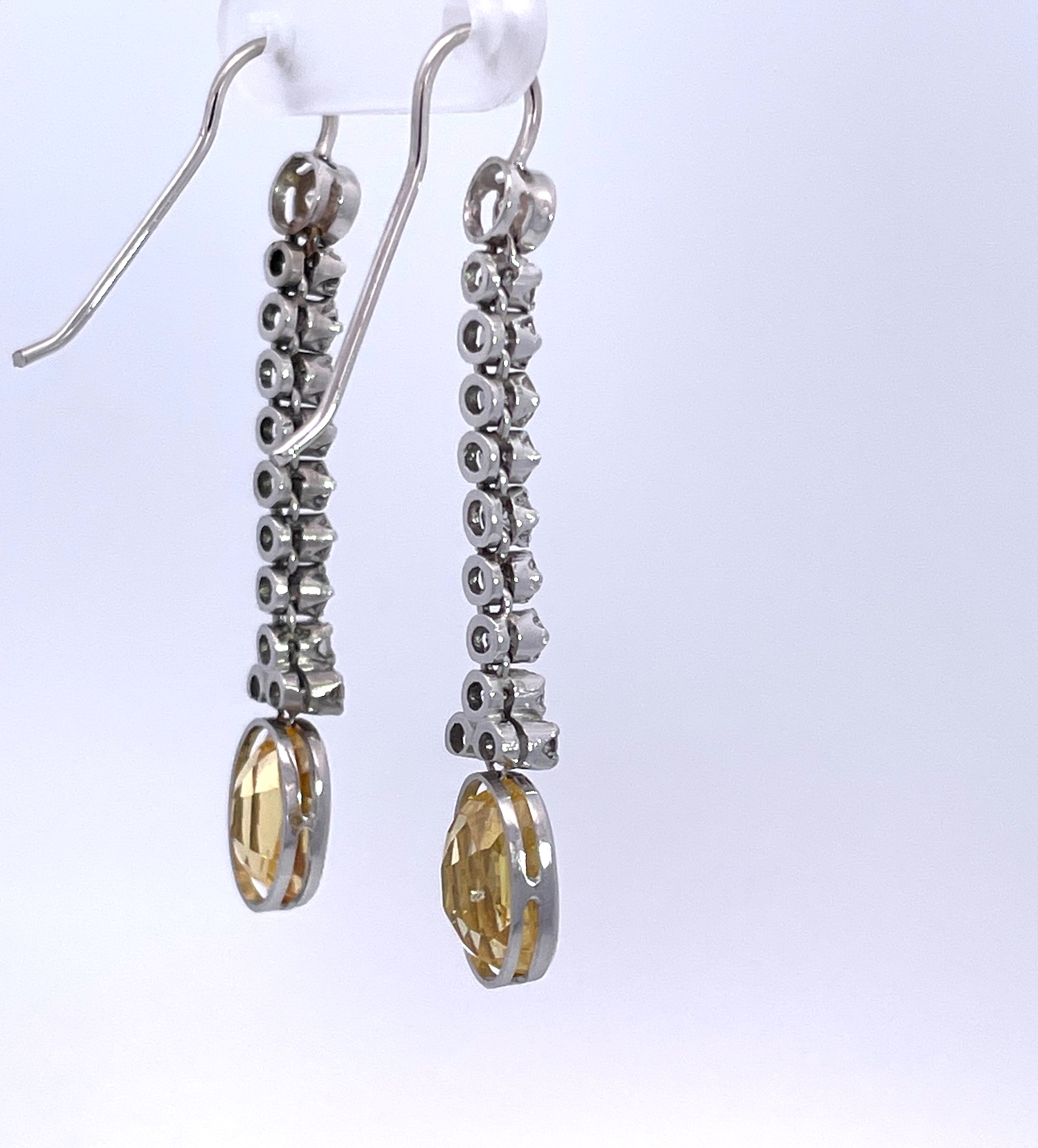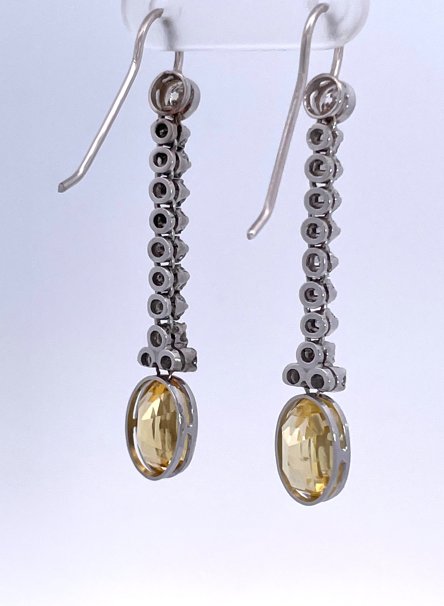 Certified Ceylon no heat Yellow Sapphire Diamond Drop Earrings
