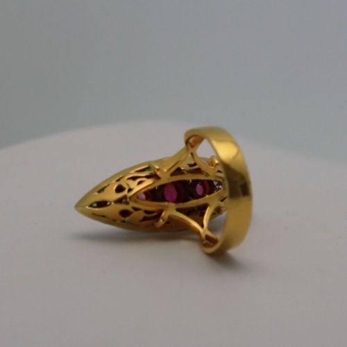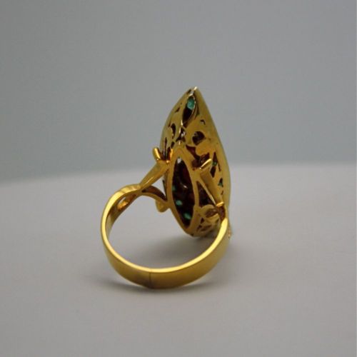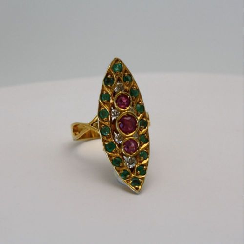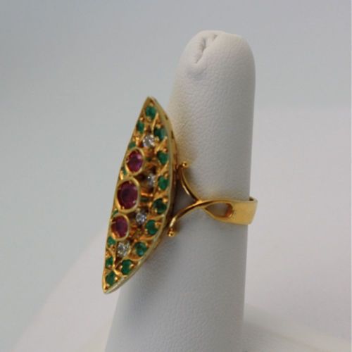 Deco Ruby Emerald & Diamond Pagoda Ring In 18K