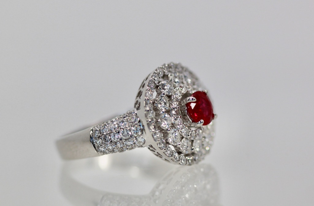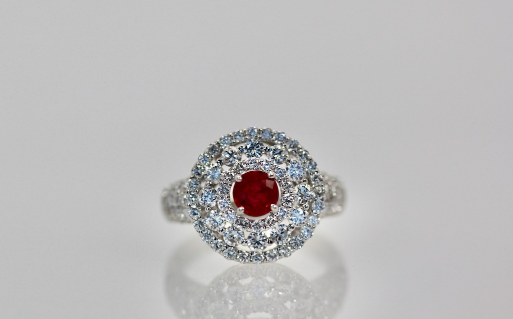 2 Carat Diamond Target Ring Ruby Center