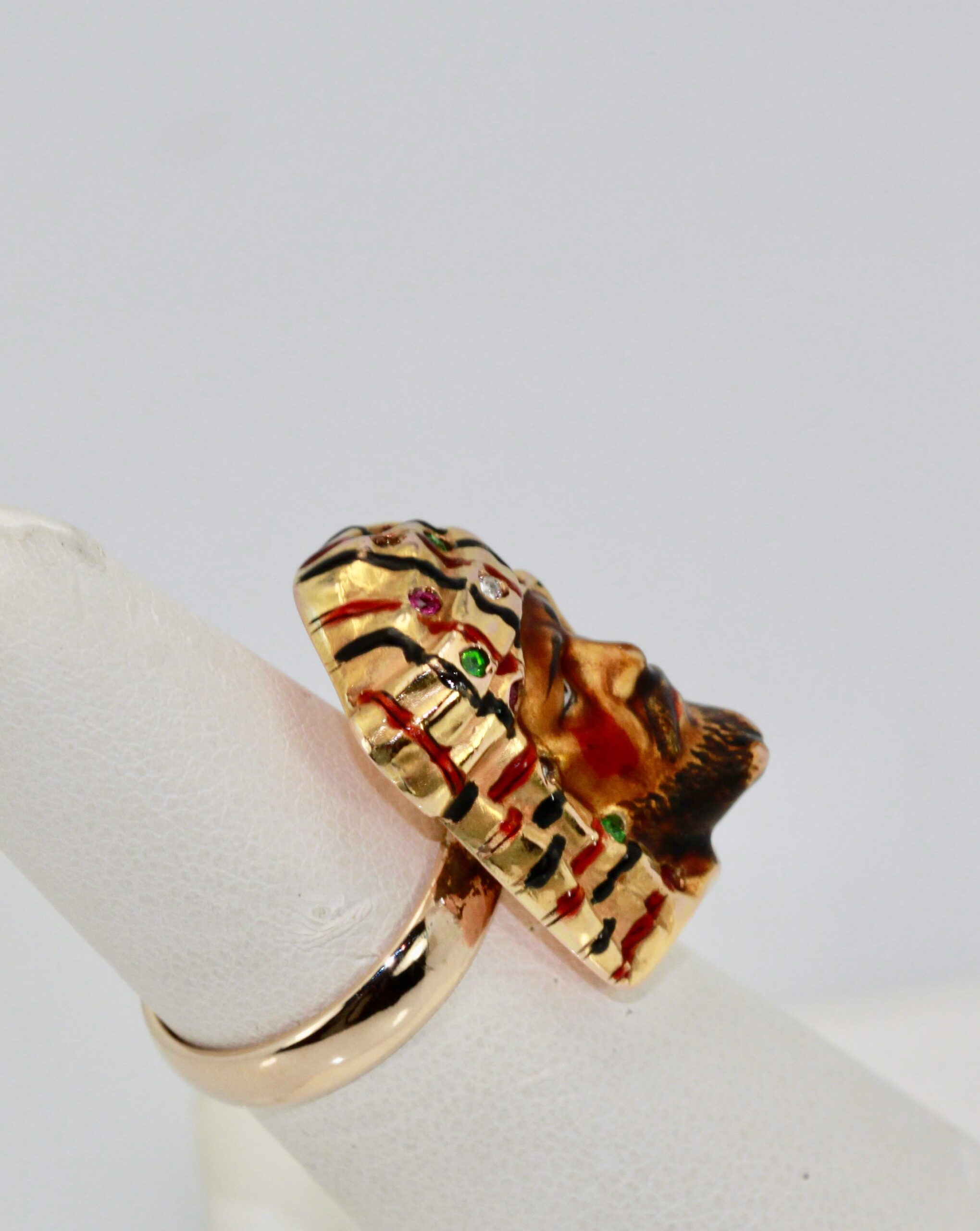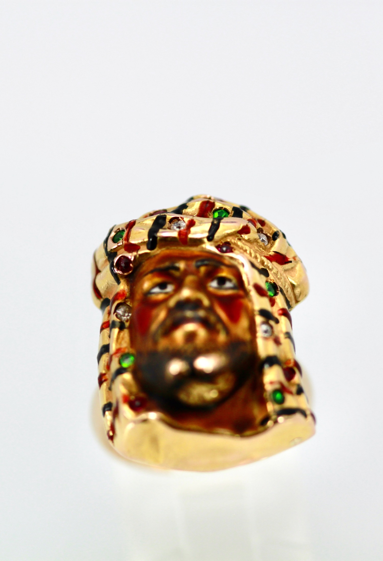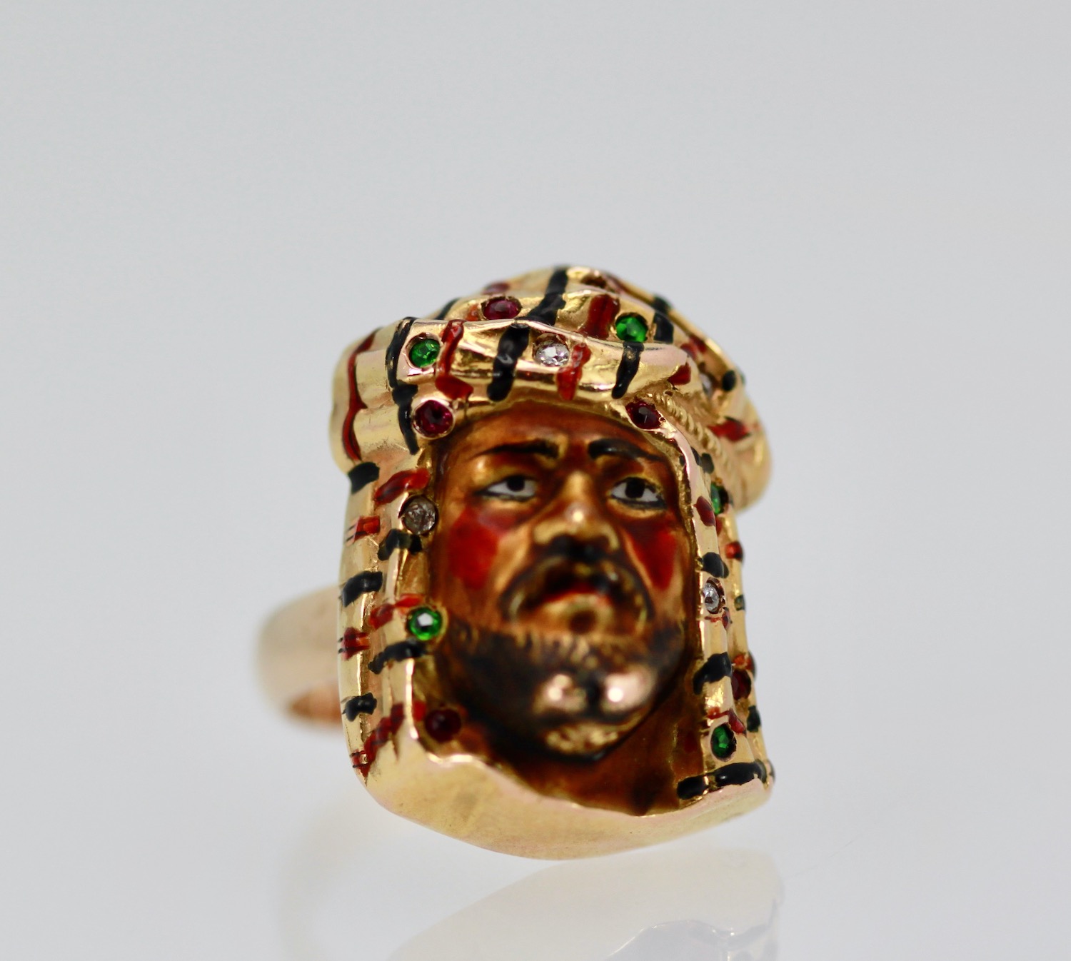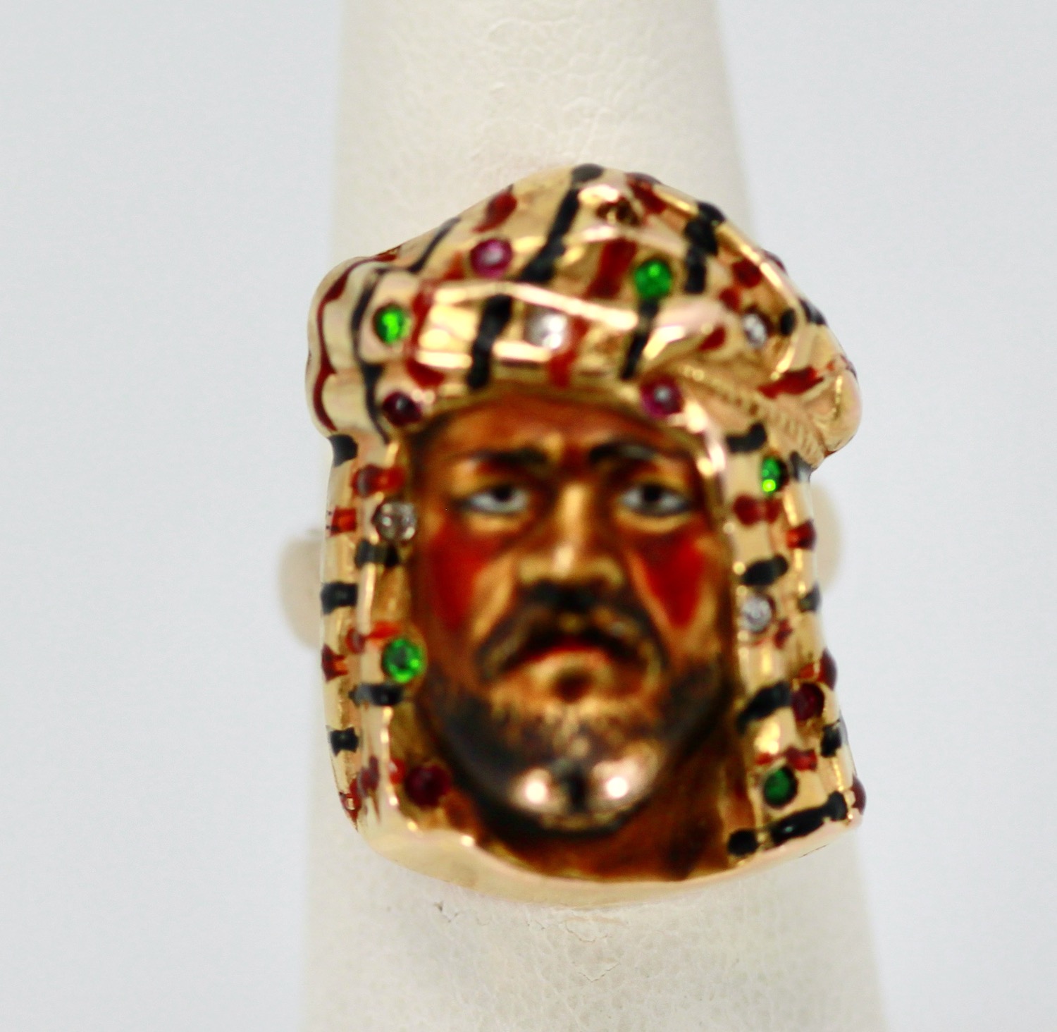 Enamel Ring with Face of Moor, Arabian or Egyptian Man 14K