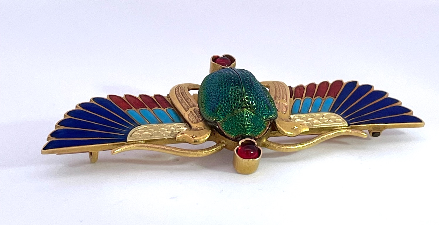 Enamel Scarab Brooch 14K by Guiseppe Parvis