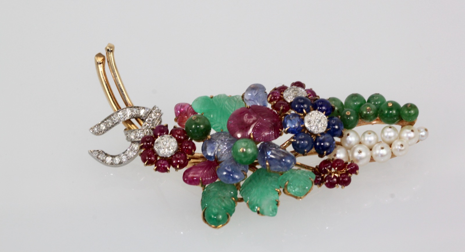 SKU: #87077 Categories: Brooches/Pins, New Arrivals Tags: Diamonds, emeralds, Gem set Diamond Brooch w/Certificate 18K, Jade, Rubies, Sapphires, Tutti Futti plus