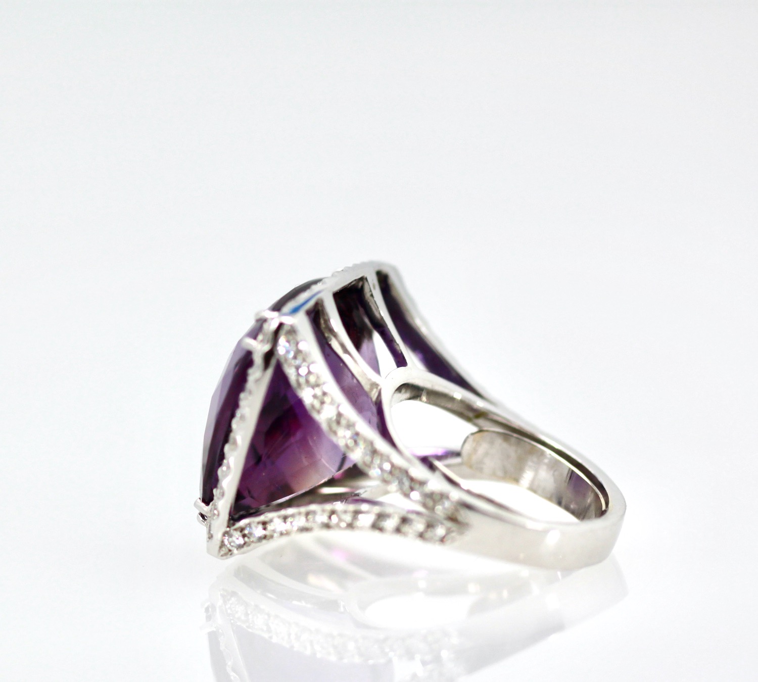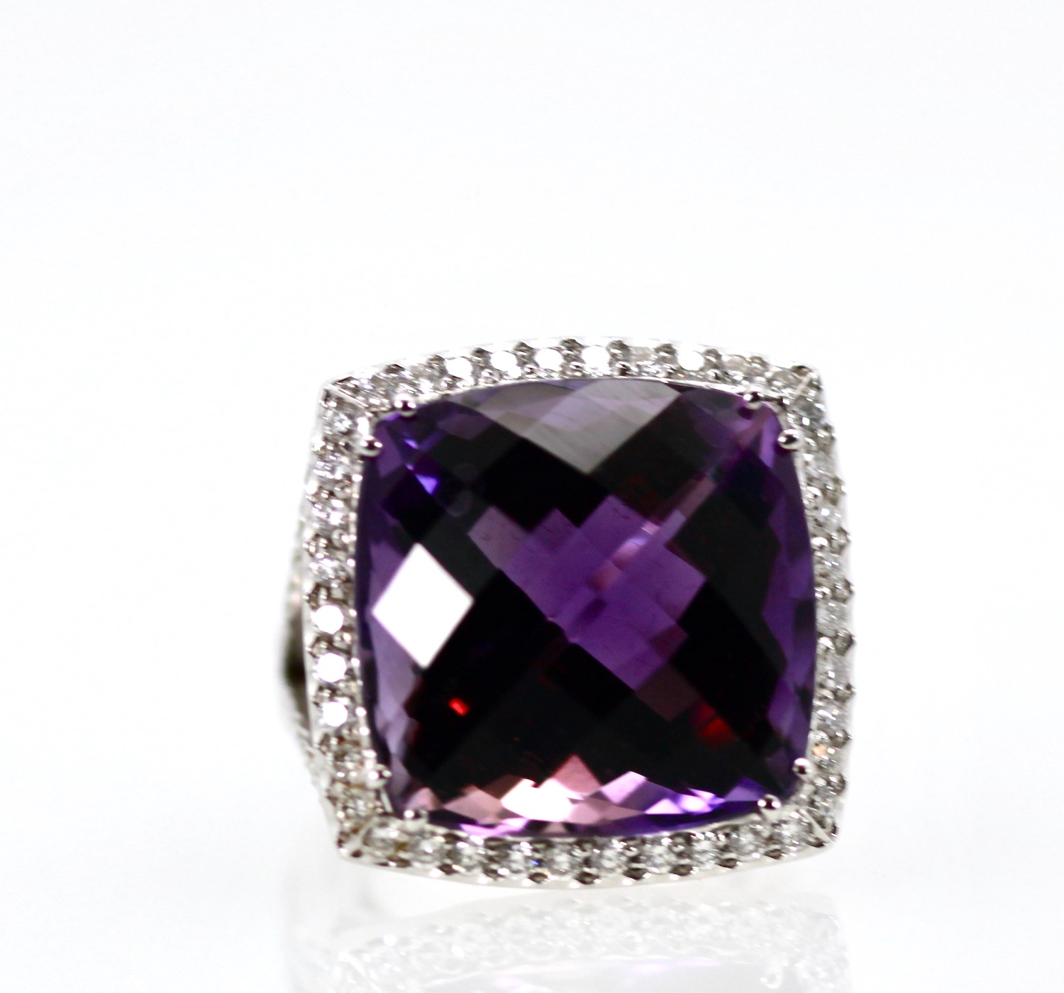 Huge Amethyst Ring 25 Carats w/ Diamond Border