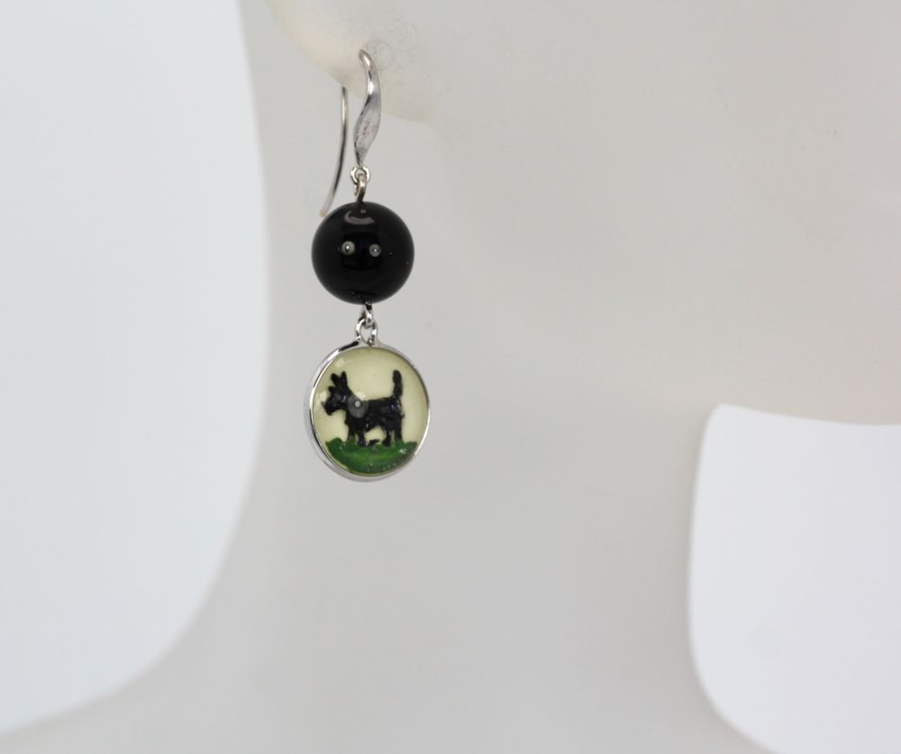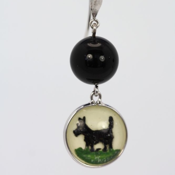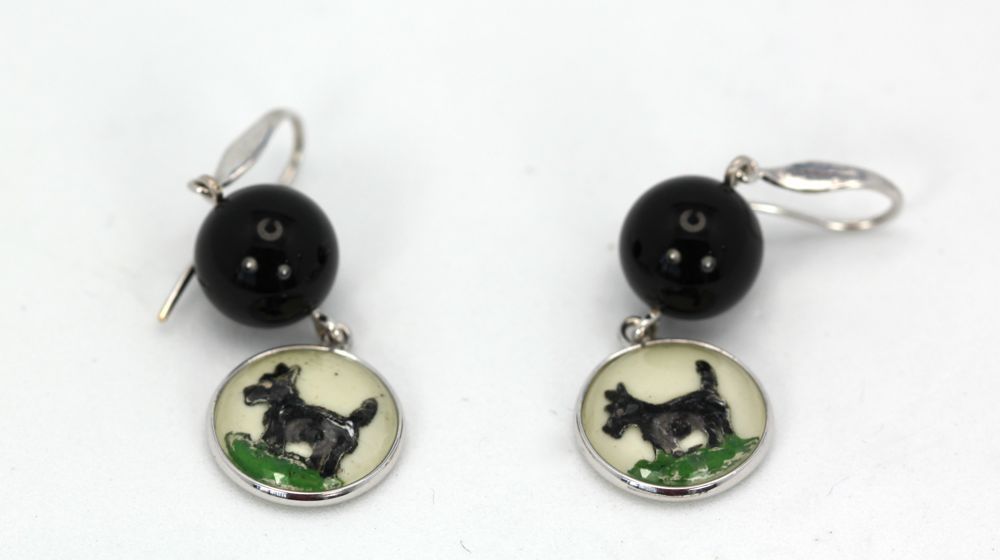 Intaglio Underglass Scottie Dog Pearl & Onyx Earrings. These drop earrings match our tassel Scottie dog necklace but by themselves they are divine!