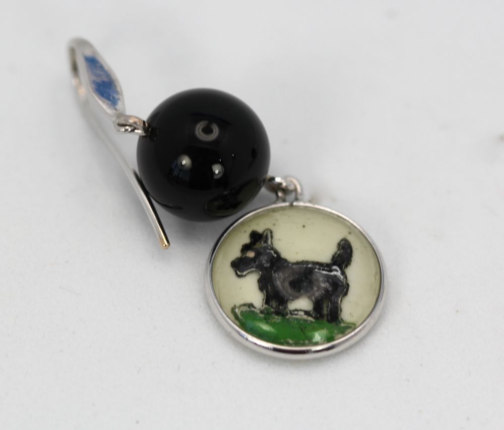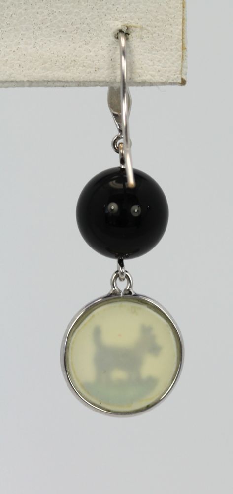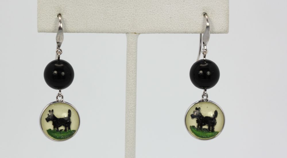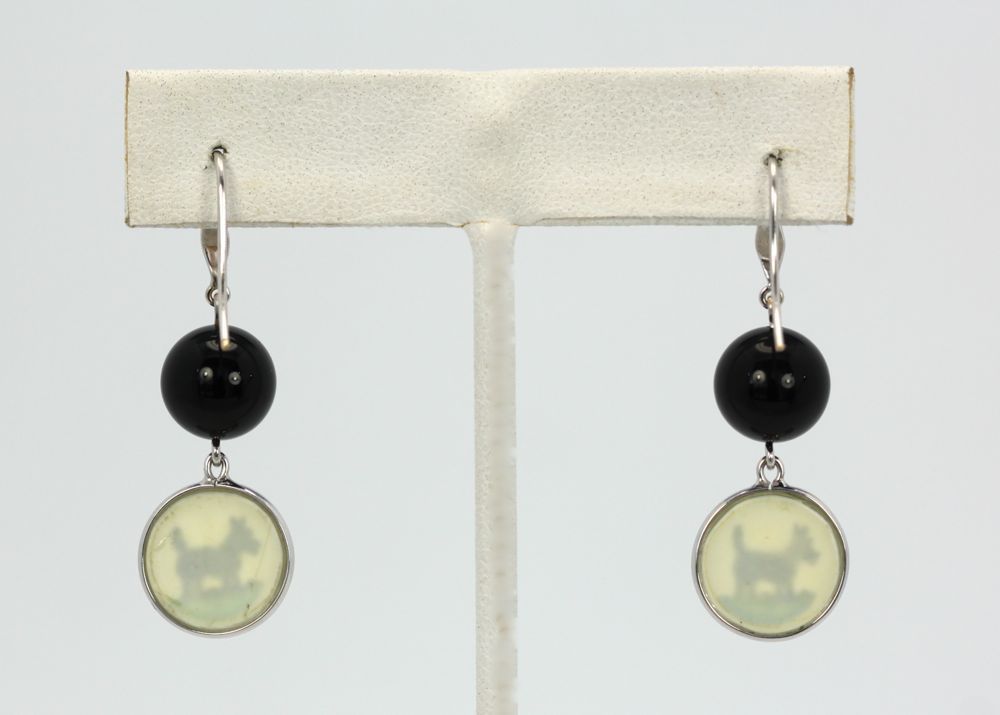 Intaglio Underglass Scottie Dog Pearl & Onyx Earrings