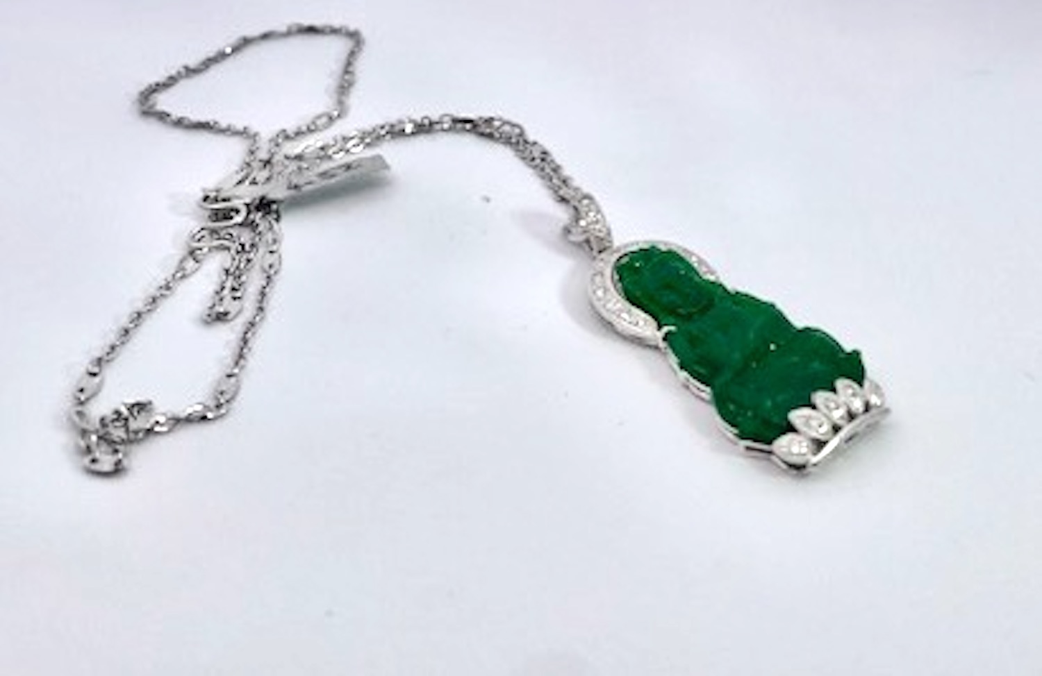 SKU: 87155Jade and Diamond Guanyin Kwan Yin Pendant Platinum Chain
