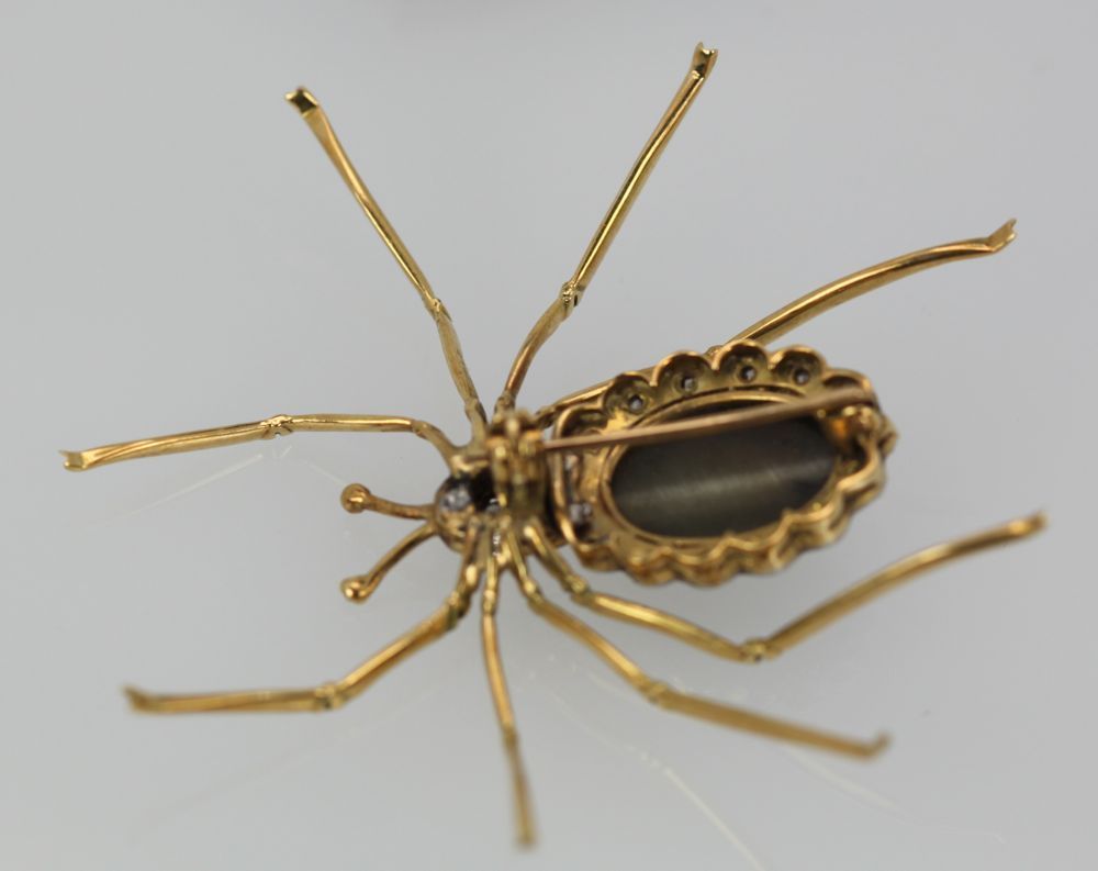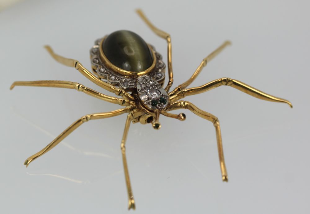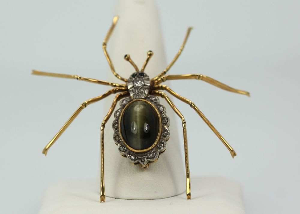 Retro Cat’s Eye Chrysoberyl Spider Brooch