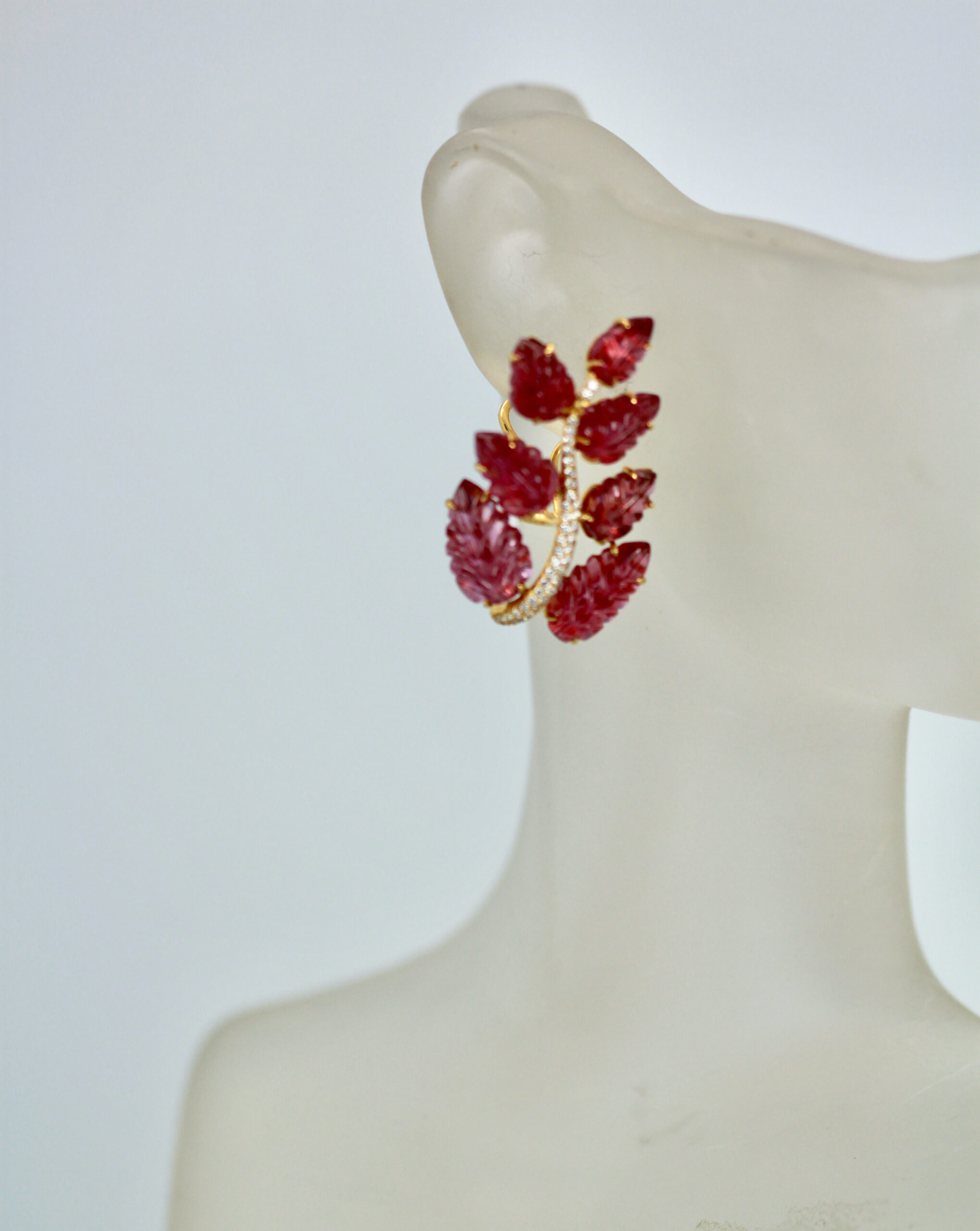 SKU: #87181Rubellite Carved Leaf earrings 14K