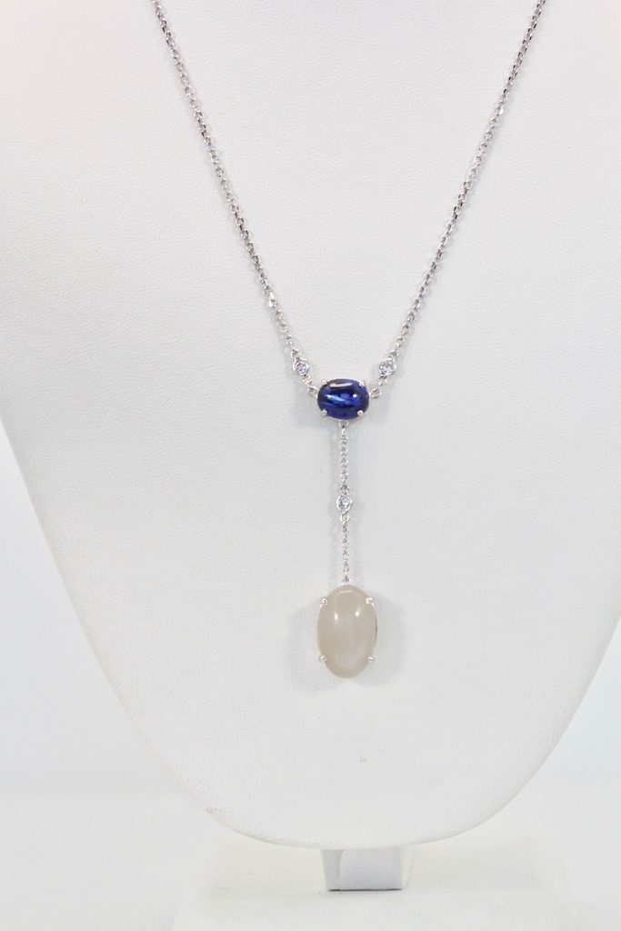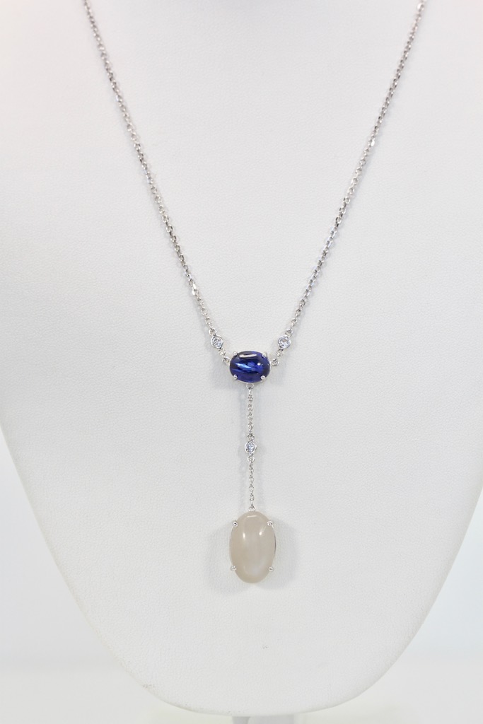 SKU: 86936Sapphire Moonstone Diamond Drop Necklace 18K