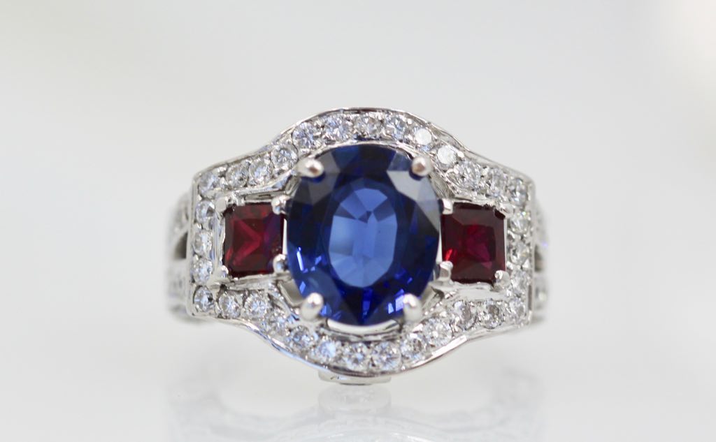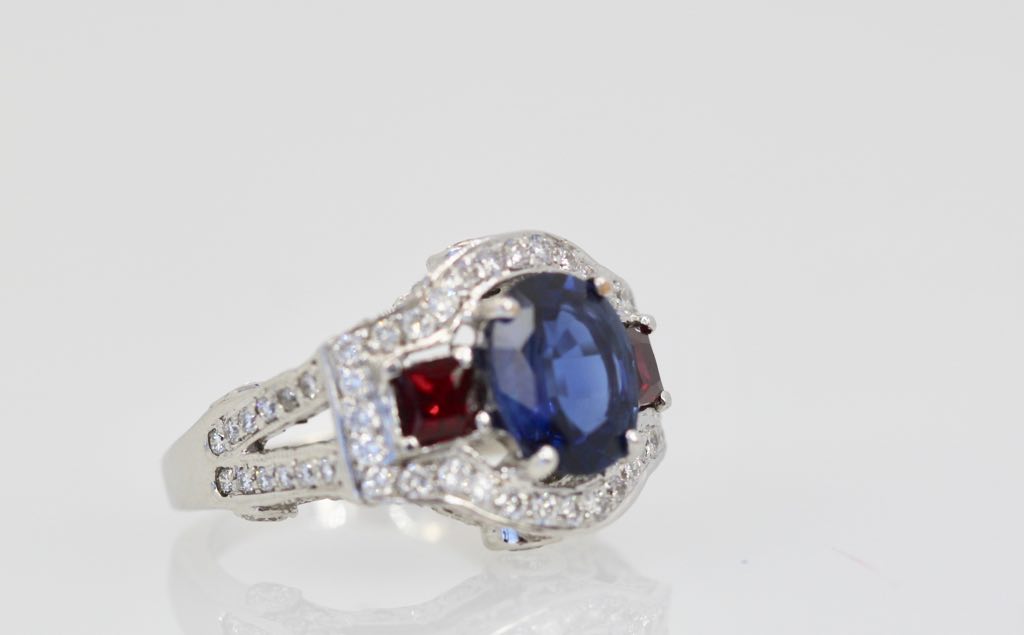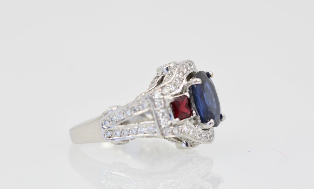 SKU: 86843Sapphire Ruby Diamond Ring 18K White Gold
