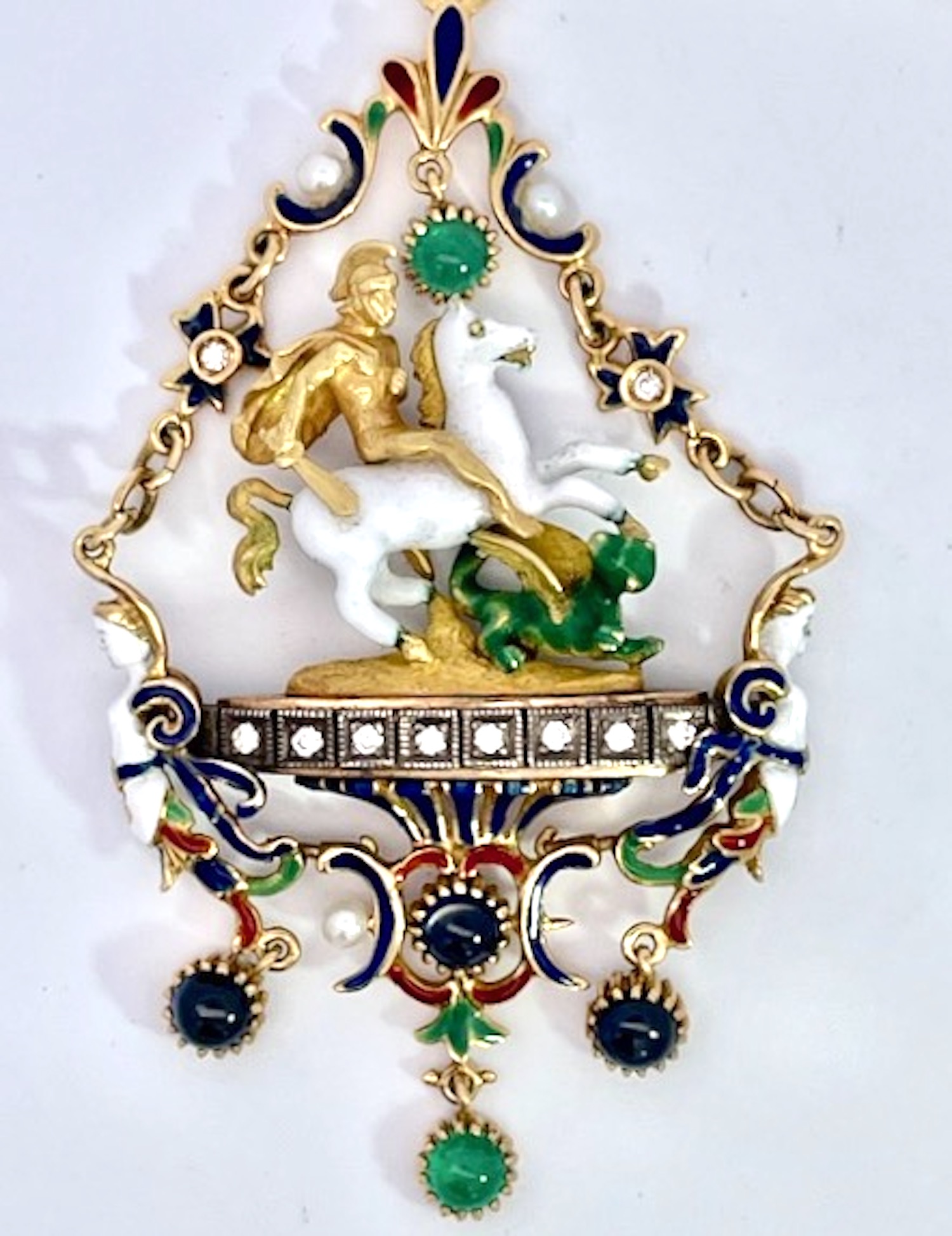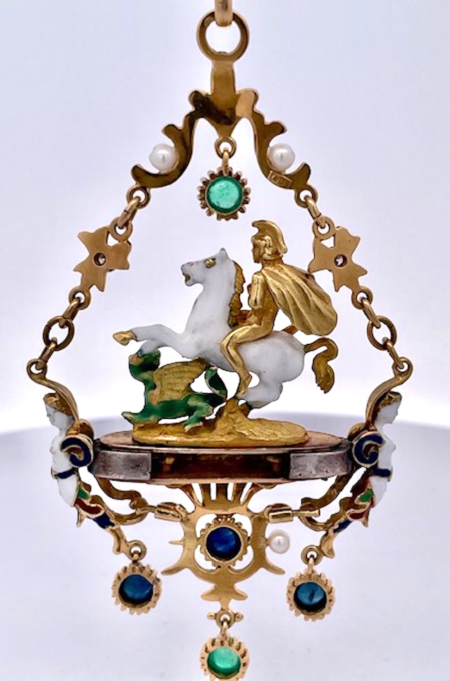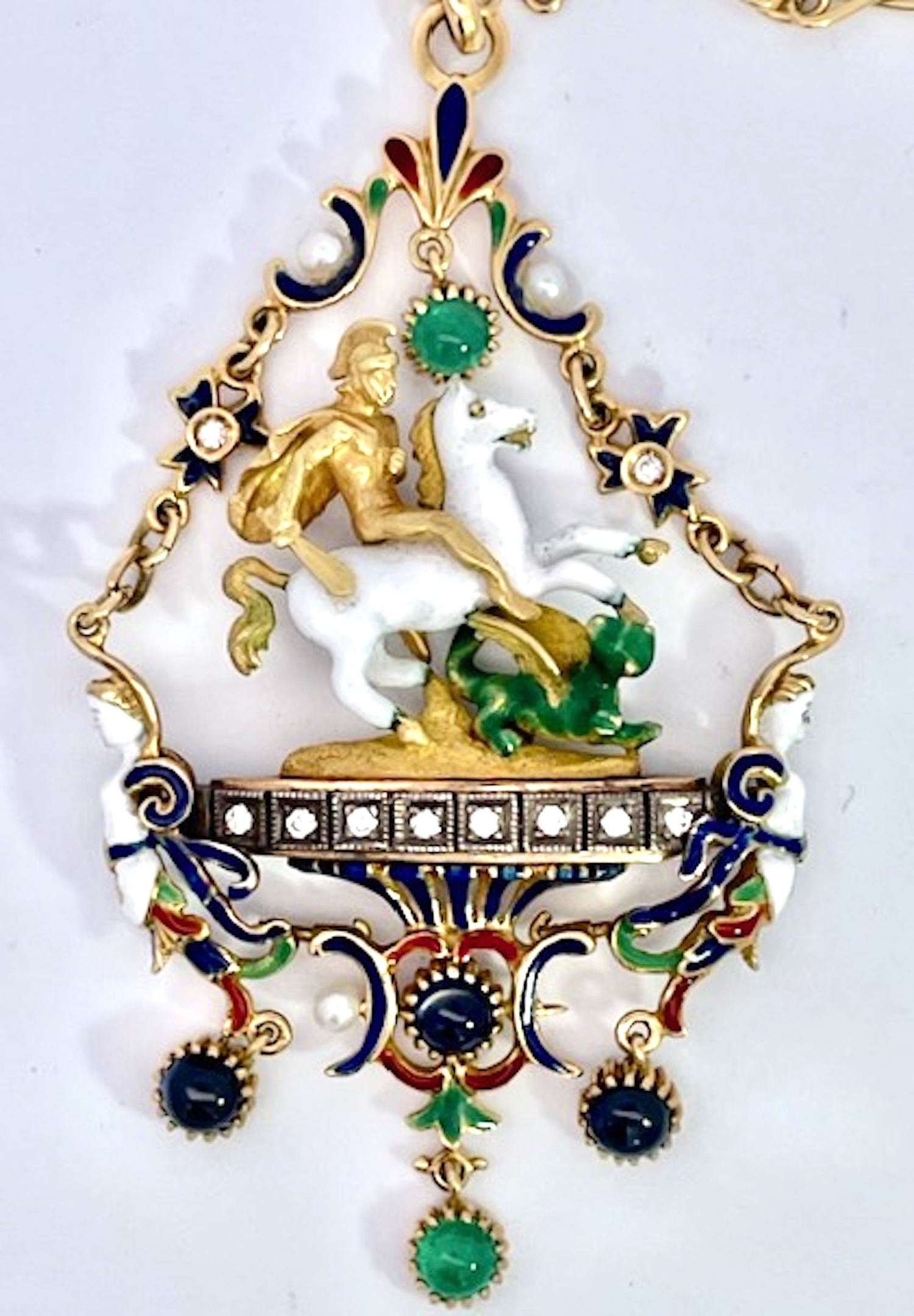 St. George Enamel Slaying the Dragon Pendant 18K
