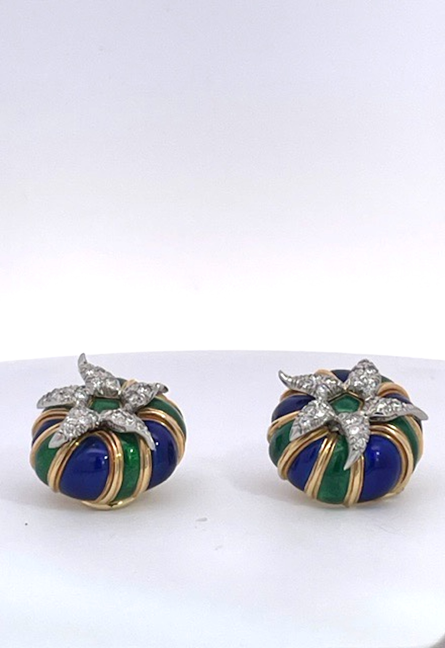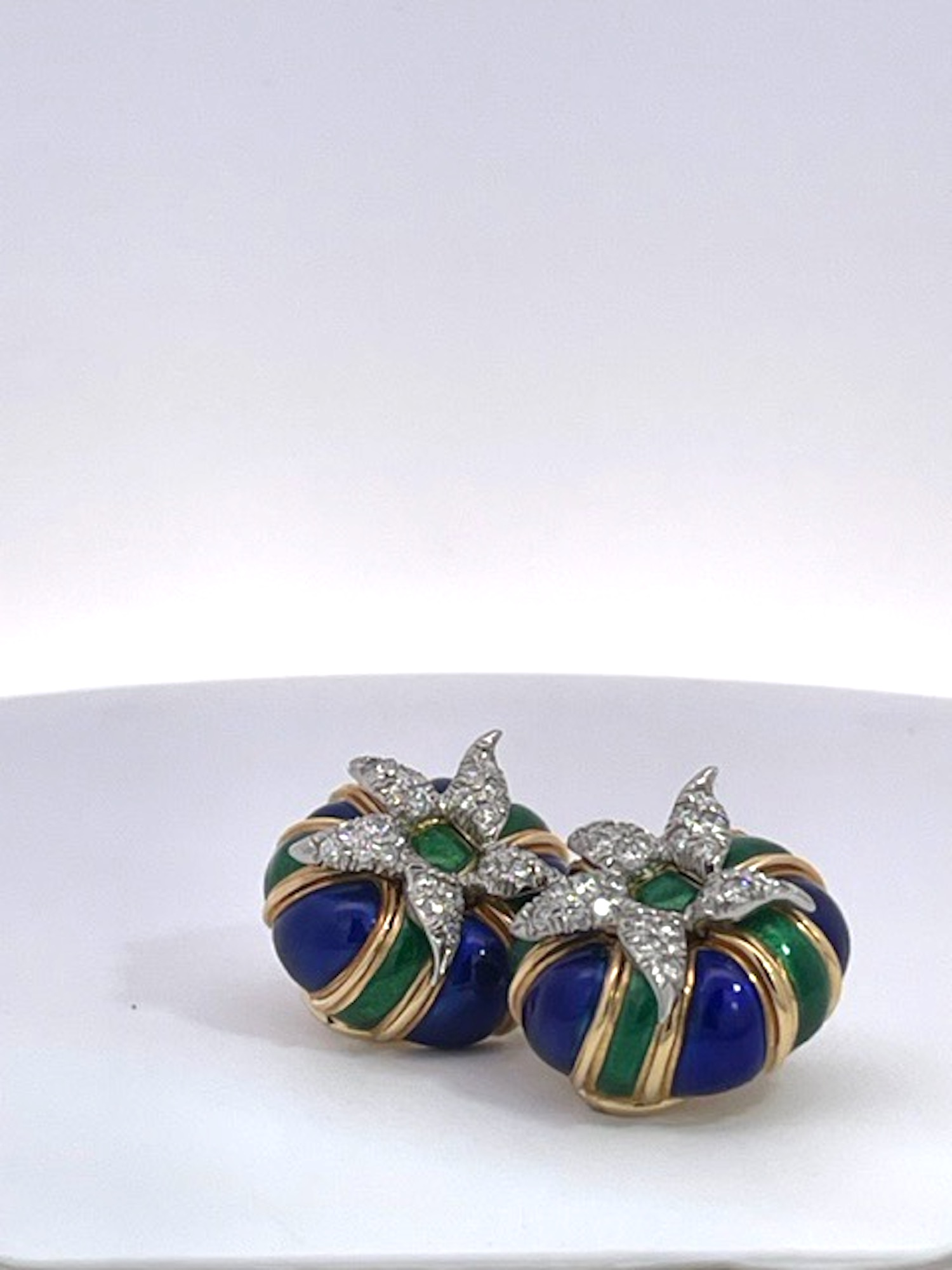 SKU: #87269Tiffany Schlumberger Enamel Earrings 18K Diamonds