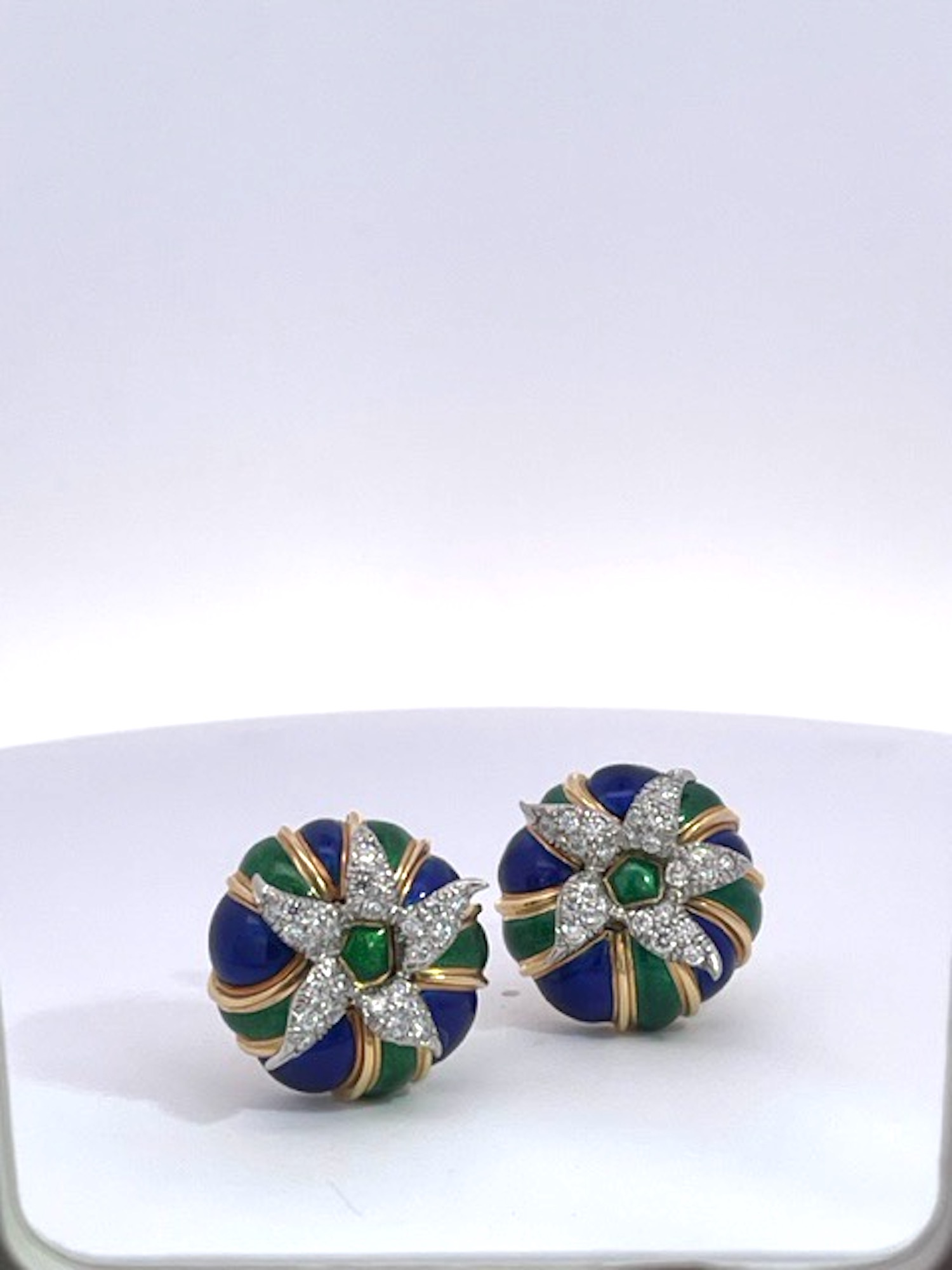 Tiffany Schlumberger Enamel Earrings 18K Diamonds