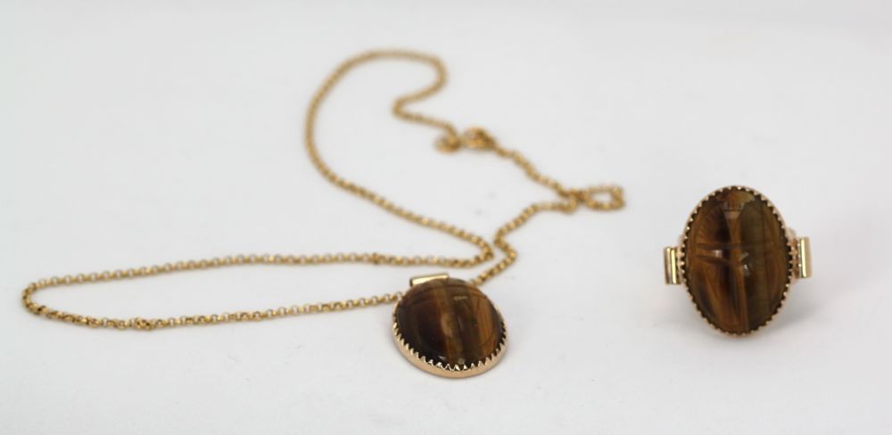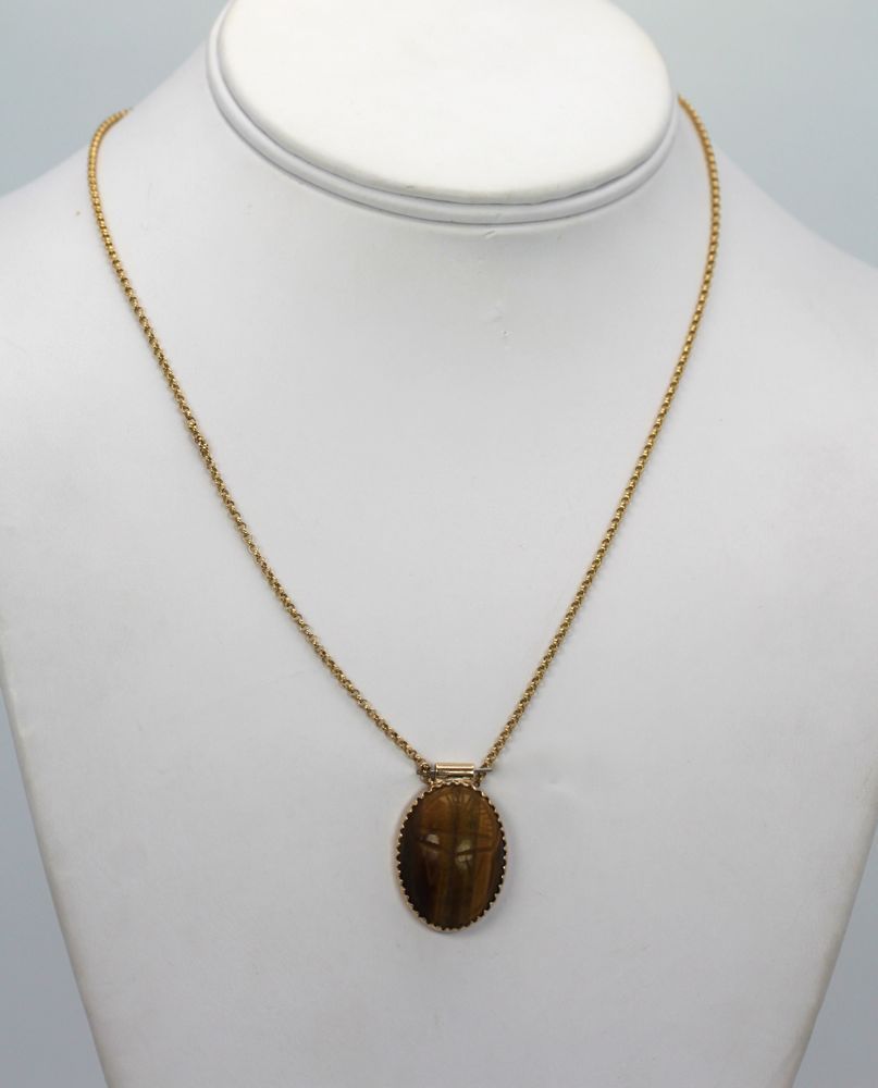 Vintage 18K Tiger’s Eye Scarab Pendant