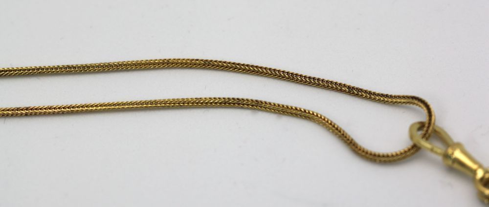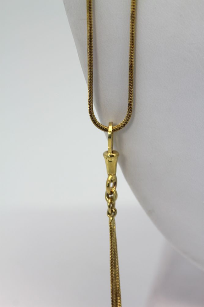 There are 20 round cut rubies with an estimate carat weight of .48 and a color grade of orangey red. In addition, on this there are 3 blue sapphires with an estimated weight of 0.12 carat, color grade blue. The butterfly holds 17 tiny mabe pearls, surface grade Good, luster grade Fair. At 62″, this chain is extremely long and can be worn as a lorgnette, doubled or single. Victorian Butterfly Mitten/Muff Extra Long Chain.