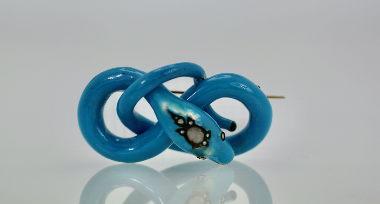 Victorian Enamel Diamond head Snake Brooch